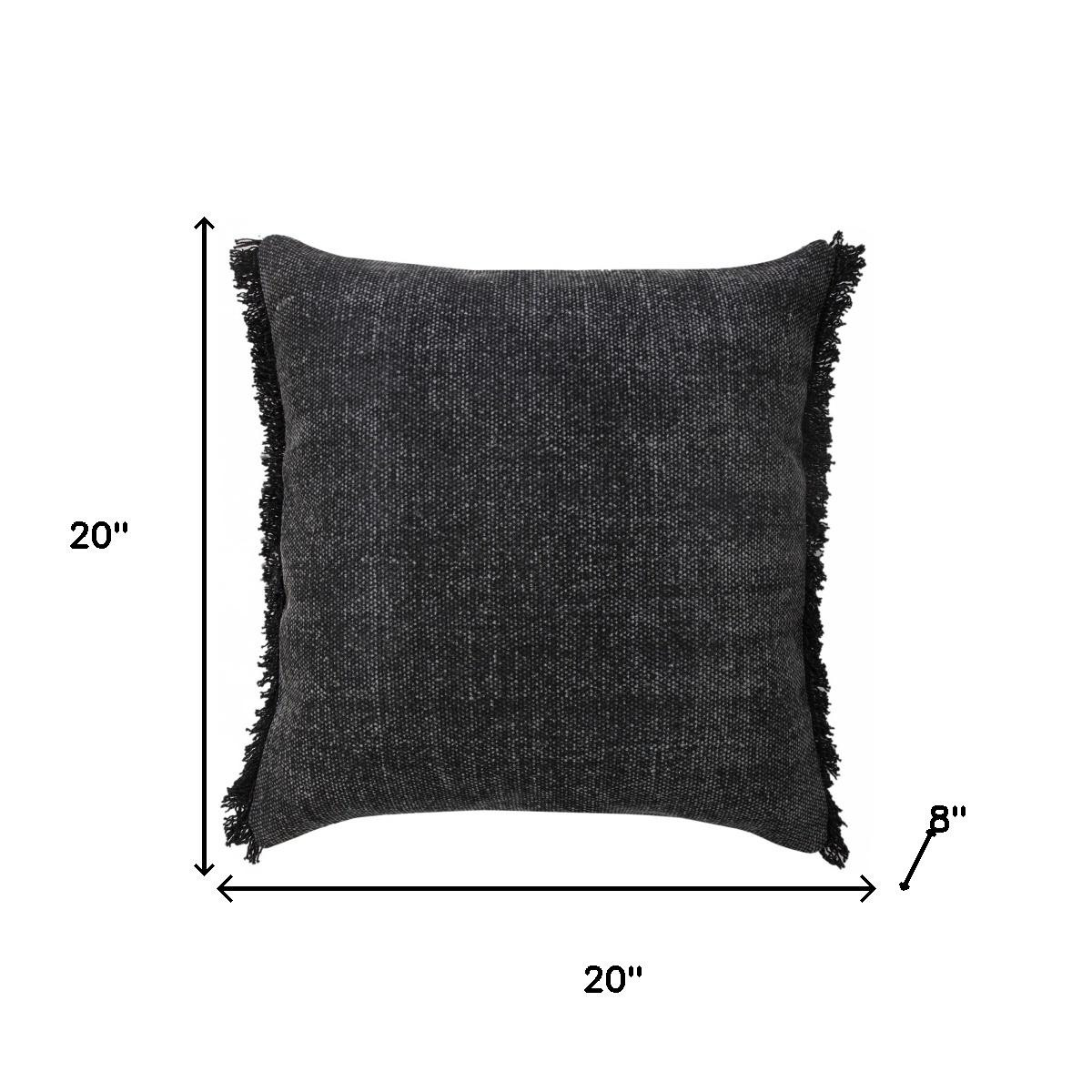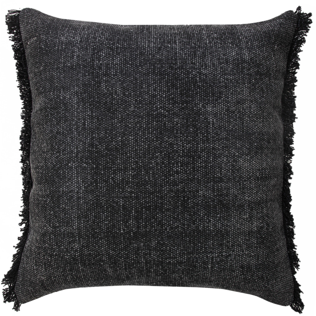 The 20-inch black and white cotton throw pillow with fringe is the perfect decorative accessory for your home. The black and white coloring of the extremely durable and long lasting cotton will add dimension and texture to your space. Decorative pillows are a great way to change up the look and feel of your space easily and quickly. A great decorative accessory to add color and dimension to your favorite chair, accent your sofa, or to use as part of your bed ensemble. 20.00-inch h x 20.00-inch w x 8.00-inch d.