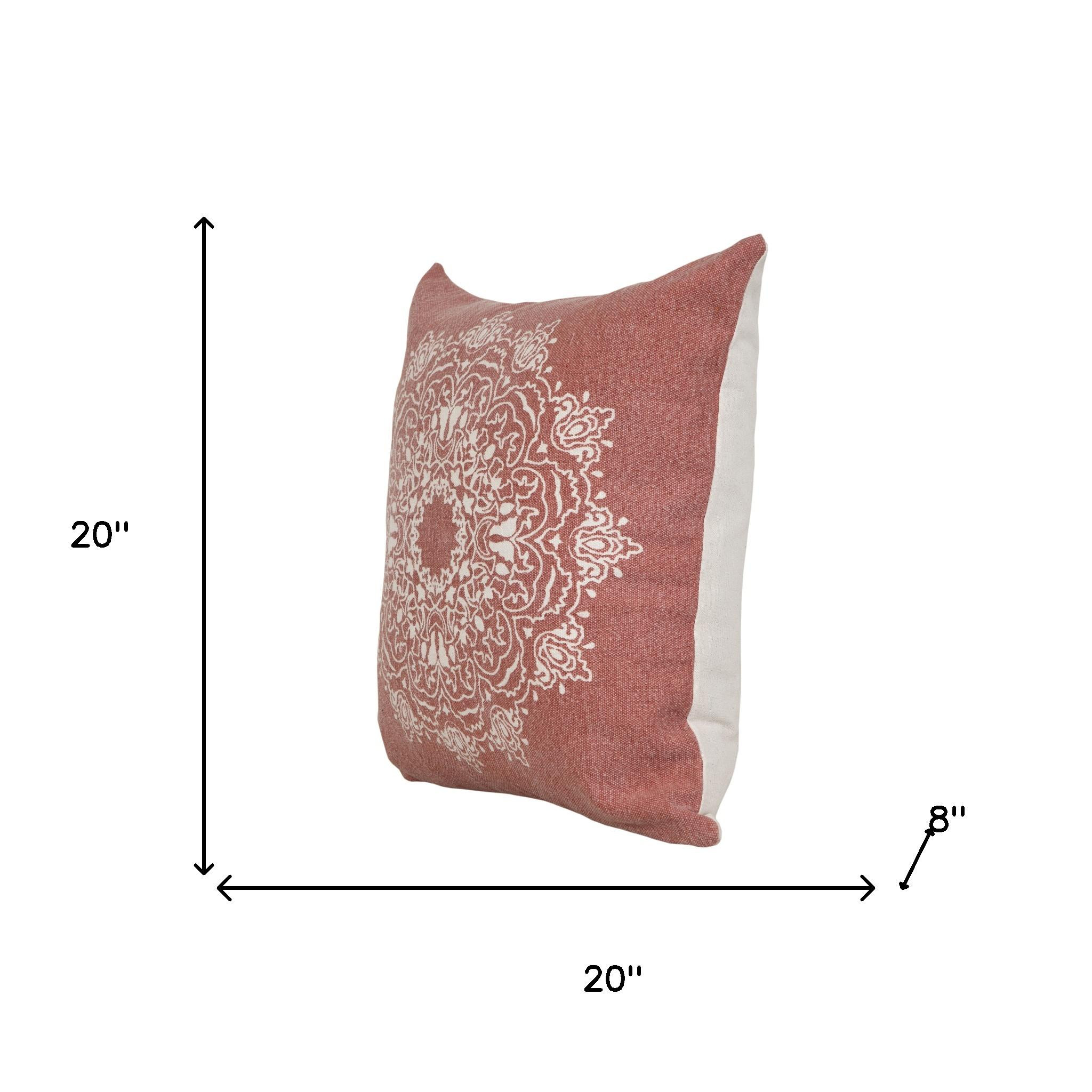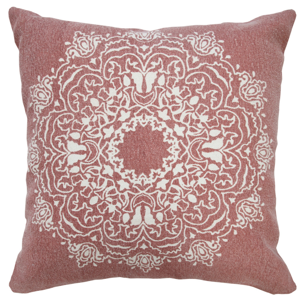 The perfect complement to your sofa, favorite chair, or bed, this 20-inch dusty rose and white medallion cotton throw pillow is a great decorative accent. This dusty rose and white hued piece represents quality construction, expertly made from durable cotton that is not only long lasting but soft to the touch as well. For anyone that loves to decorate or accent their space with color and texture. A great decorative accessory to add color and dimension to your favorite chair, accent your sofa, or to use as part of your bed ensemble. 20.00-inch h x 20.00-inch w x 8.00-inch d.