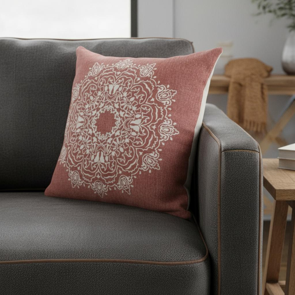 white medallion cotton throw pillow, medallion cotton throw pillow, cotton throw pillow, dusty rose white medallion cotton, rose white medallion cotton throw |