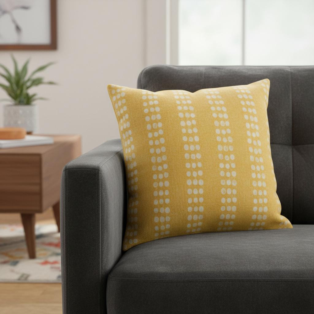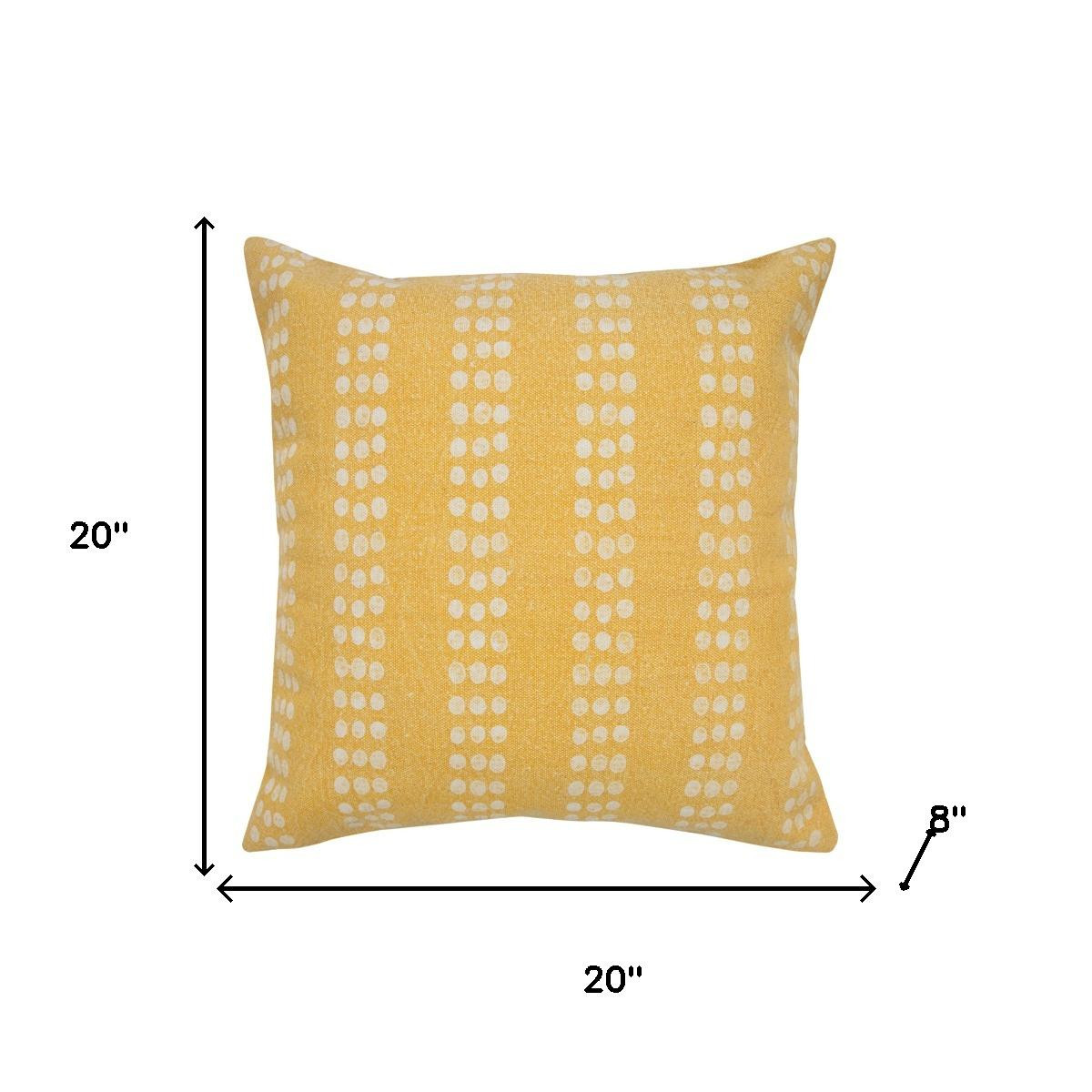 Bring a bit of fashion and zip to your space with this eye-catching and comfy 20-inch yellow and white striped cotton throw pillow. This yellow and white hued piece represents quality construction, expertly made from durable cotton that is not only long lasting but soft to the touch as well. Decorative pillows are a great way to change up the look and feel of your space easily and quickly. A great decorative accessory to add color and dimension to your favorite chair, accent your sofa, or to use as part of your bed ensemble. 20.00-inch h x 20.00-inch w x 8.00-inch d.