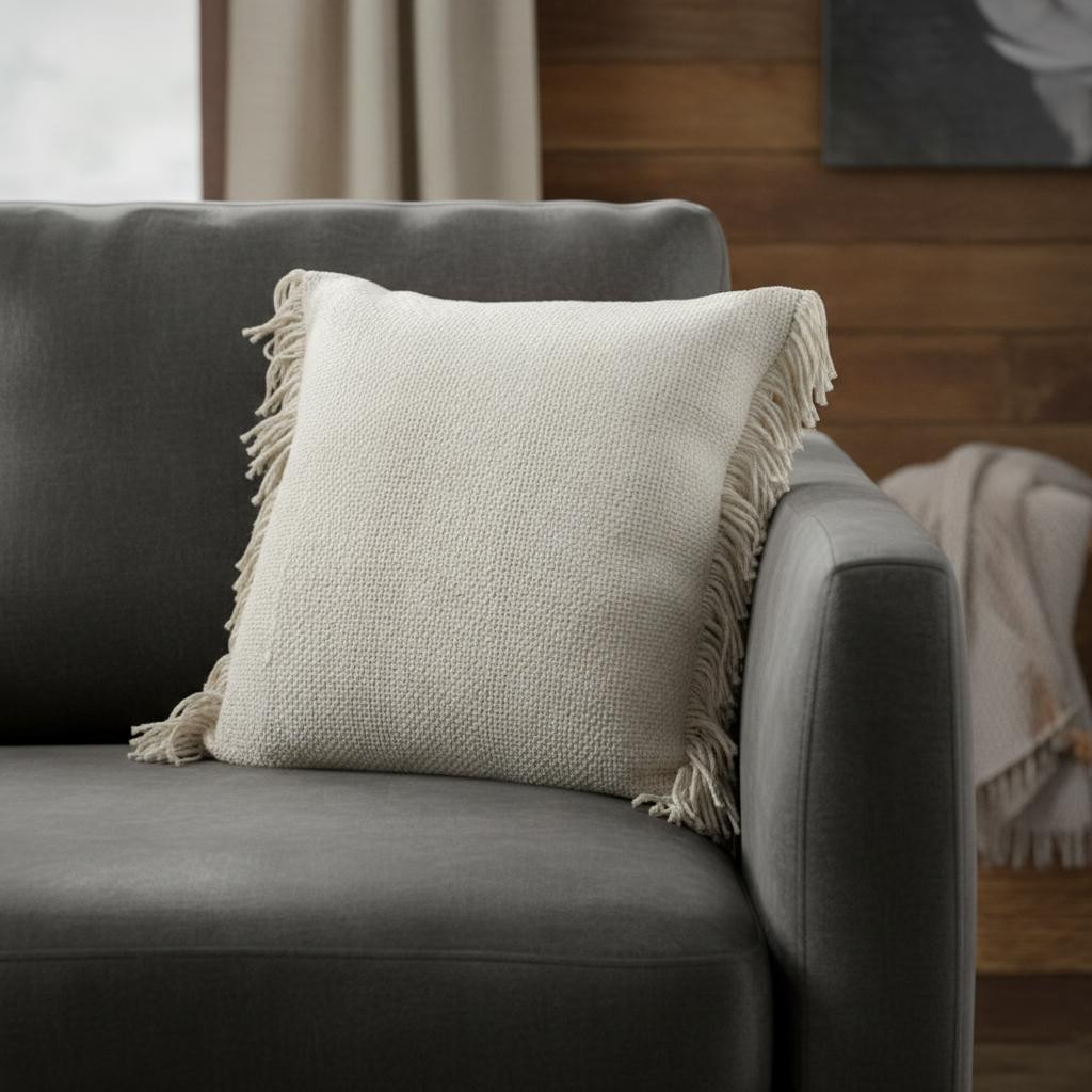 ivory cotton throw pillow fringe, cotton throw pillow fringe, beige ivory cotton throw pillow, ivory cotton throw pillow, throw pillow fringe |