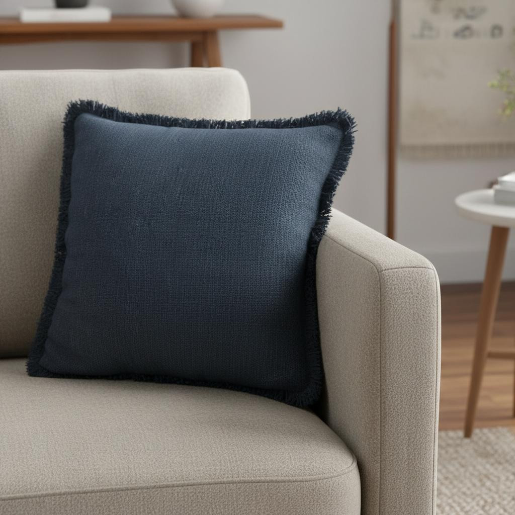 cotton throw pillow fringe, blue cotton throw pillow fringe, navy blue cotton throw pillow, throw pillow fringe, cotton throw pillow |