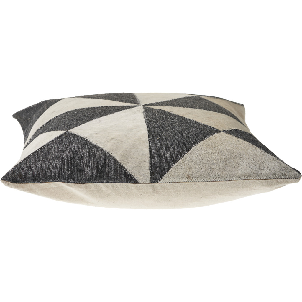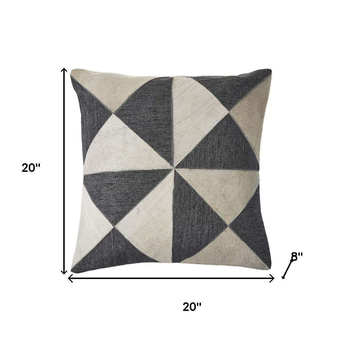Bring a bit of fashion and zip to your space with this eye-catching and comfy 20-inch charcoal and beige geometric faux hide throw pillow with texture. This charcoal and beige colored decorative pillow is made from high grade faux hide that is durable and long lasting. Great to use on its own or mix with other decorations for the perfect look. A great decorative accessory to add color and dimension to your favorite chair, accent your sofa, or to use as part of your bed ensemble. 20.00-inch h x 20.00-inch w x 8.00-inch d.