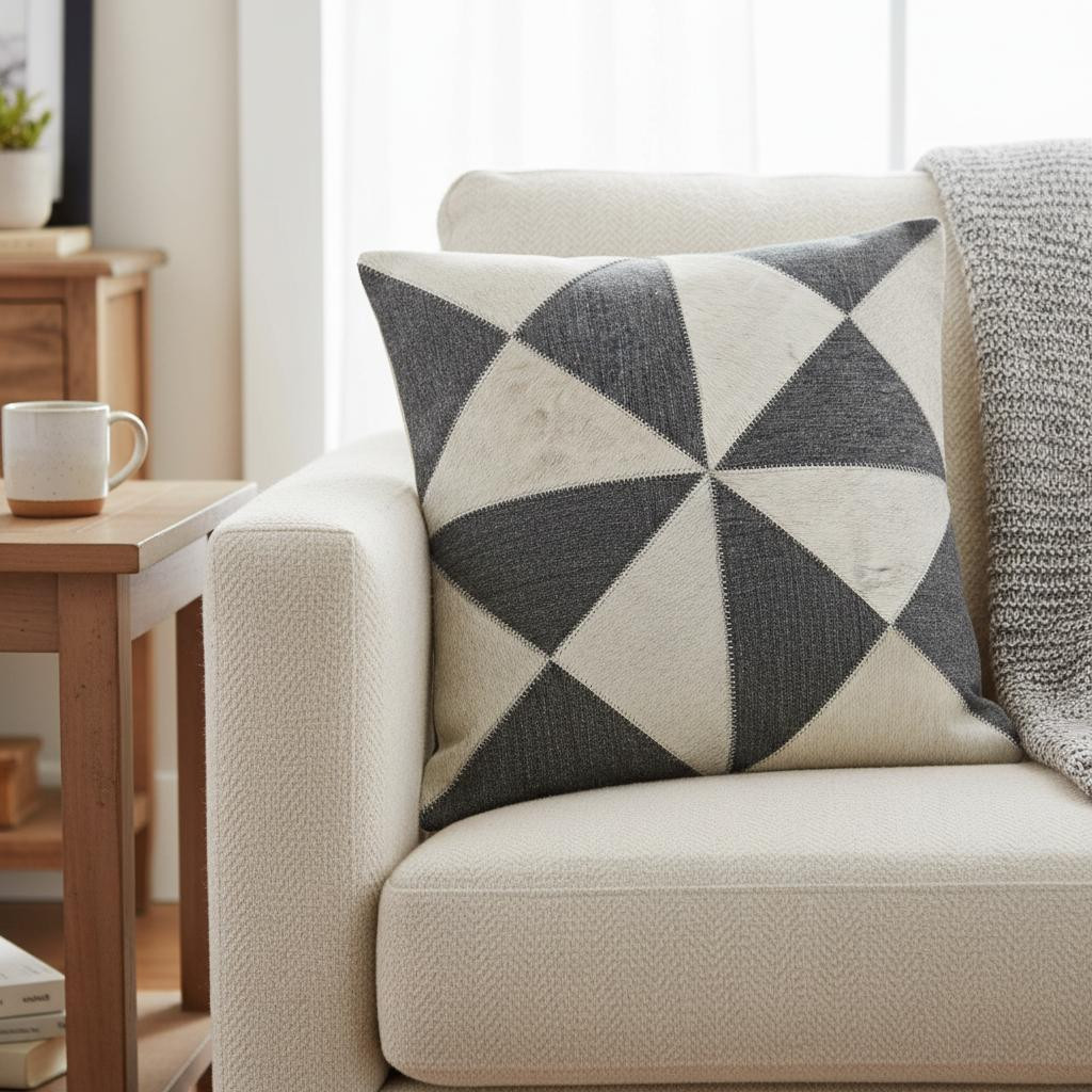 faux hide throw pillow texture, geometric faux hide throw pillow, faux hide throw pillow, hide throw pillow texture, 20" charcoal beige geometric faux |