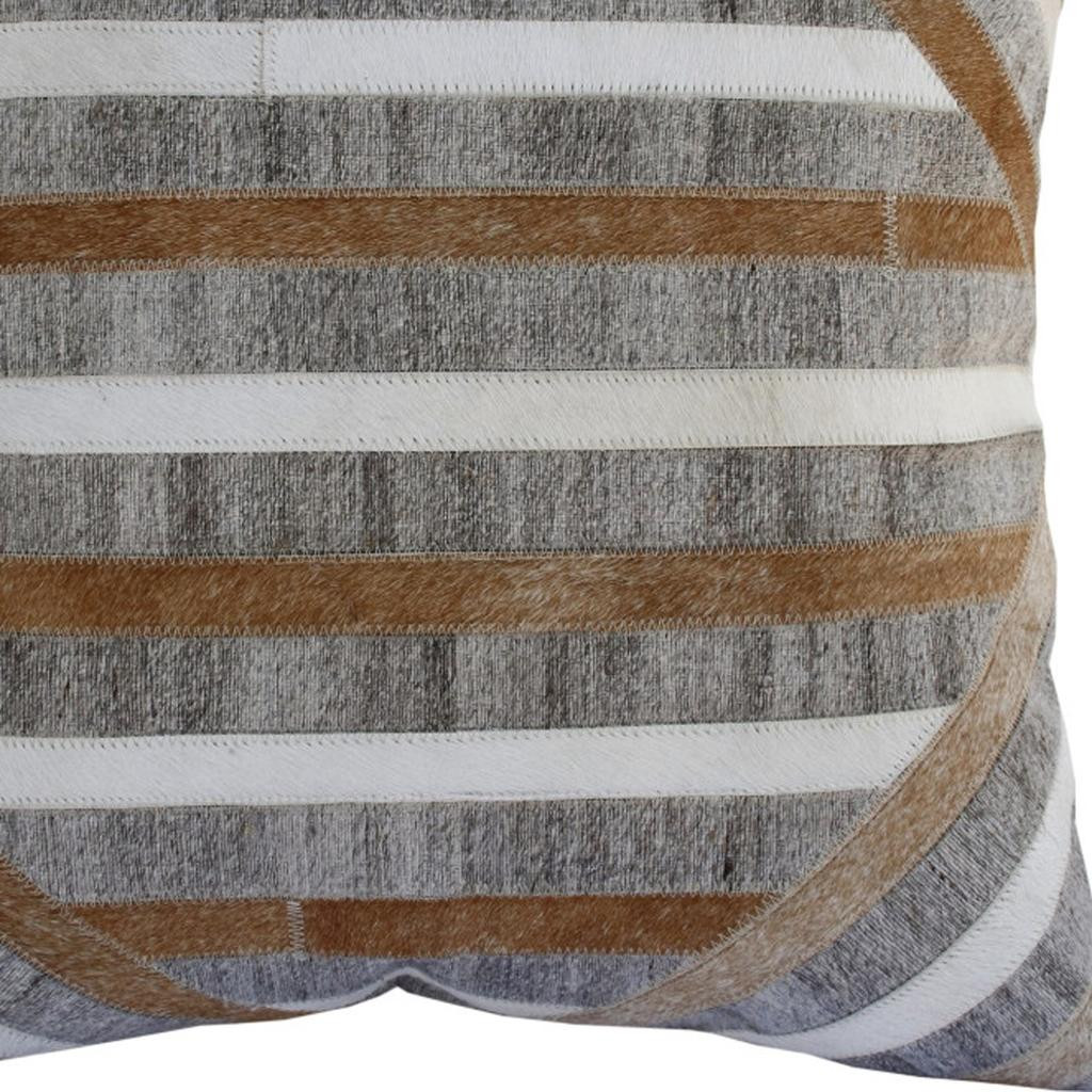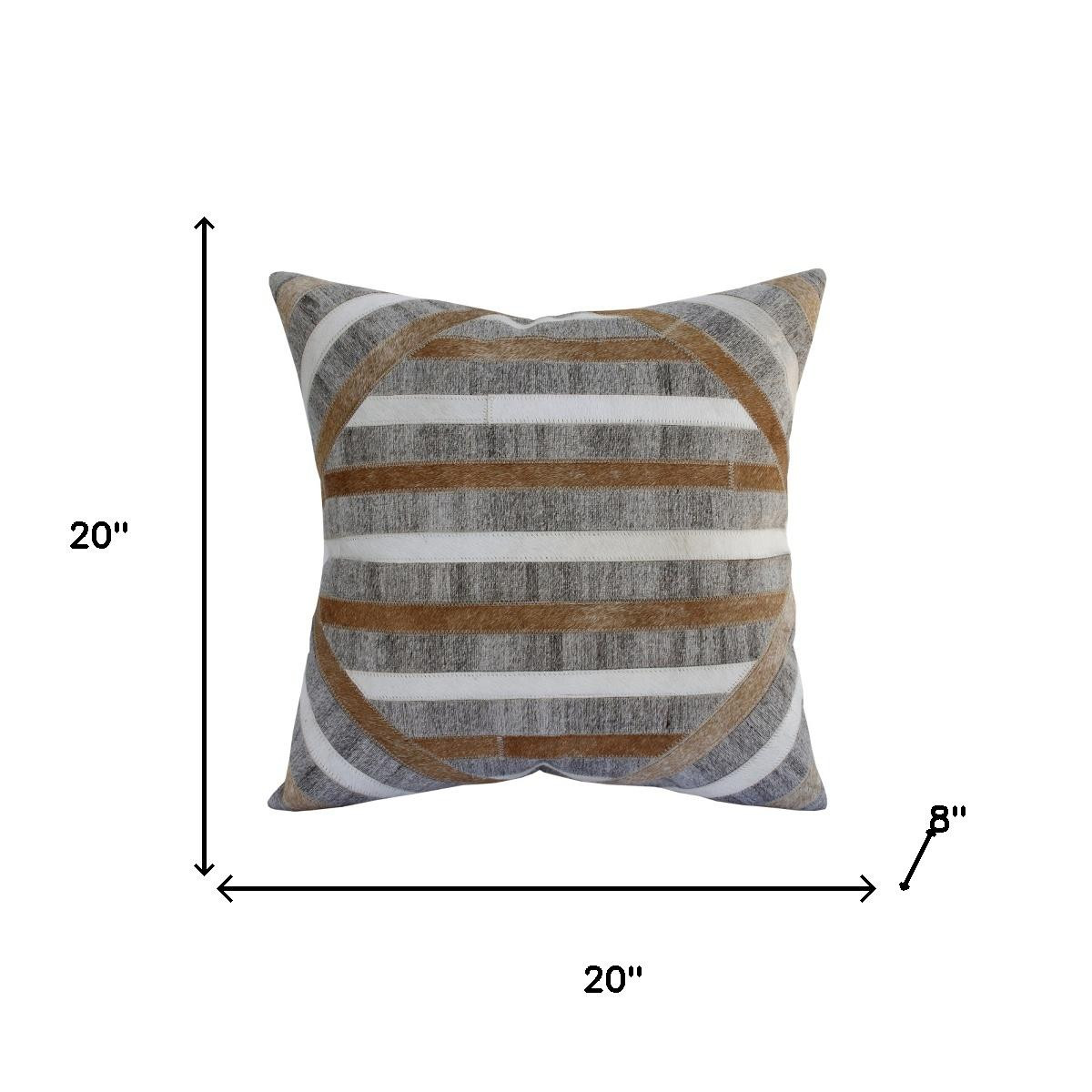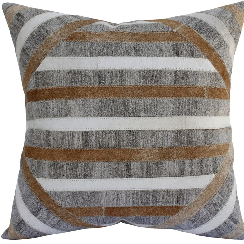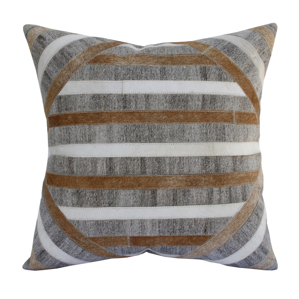 Unique and decorative, this comfortable 20-inch brown and gray striped faux hide throw pillow with texture will leave a lasting impression. Durable brown and gray faux hide has been used to give this pillow a beautiful look that will stand the test of time. For anyone that loves to decorate or accent their space with color and texture. Decorative throw pillows not only add color and dimension to your space but can be comfy and supportive when you are lounging and cuddling as well. 20.00-inch h x 20.00-inch w x 8.00-inch d.