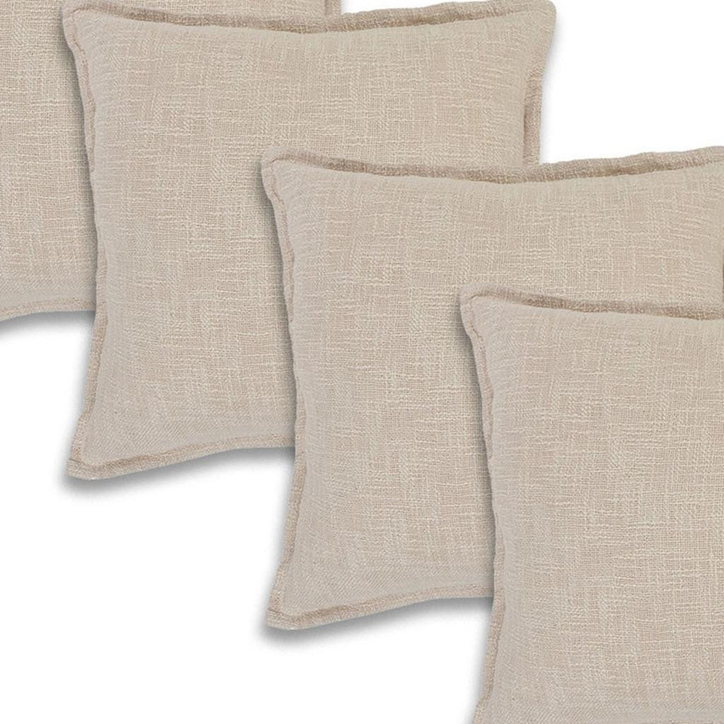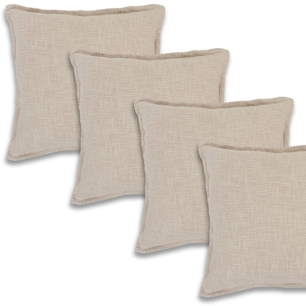 Unique and decorative, this comfortable set of four cream and beige cotton throw pillows will leave a lasting impression. These great looking soft decorative pillows are expertly made of durable and long lasting cotton in a cream and beige coloration. Decorative pillows are a great way to change up the look and feel of your space easily and quickly. Decorative throw pillows not only add color and dimension to your space but can be comfy and supportive when you are lounging and cuddling as well. 20.00-inch h x 20.00-inch w x 8.00-inch d.