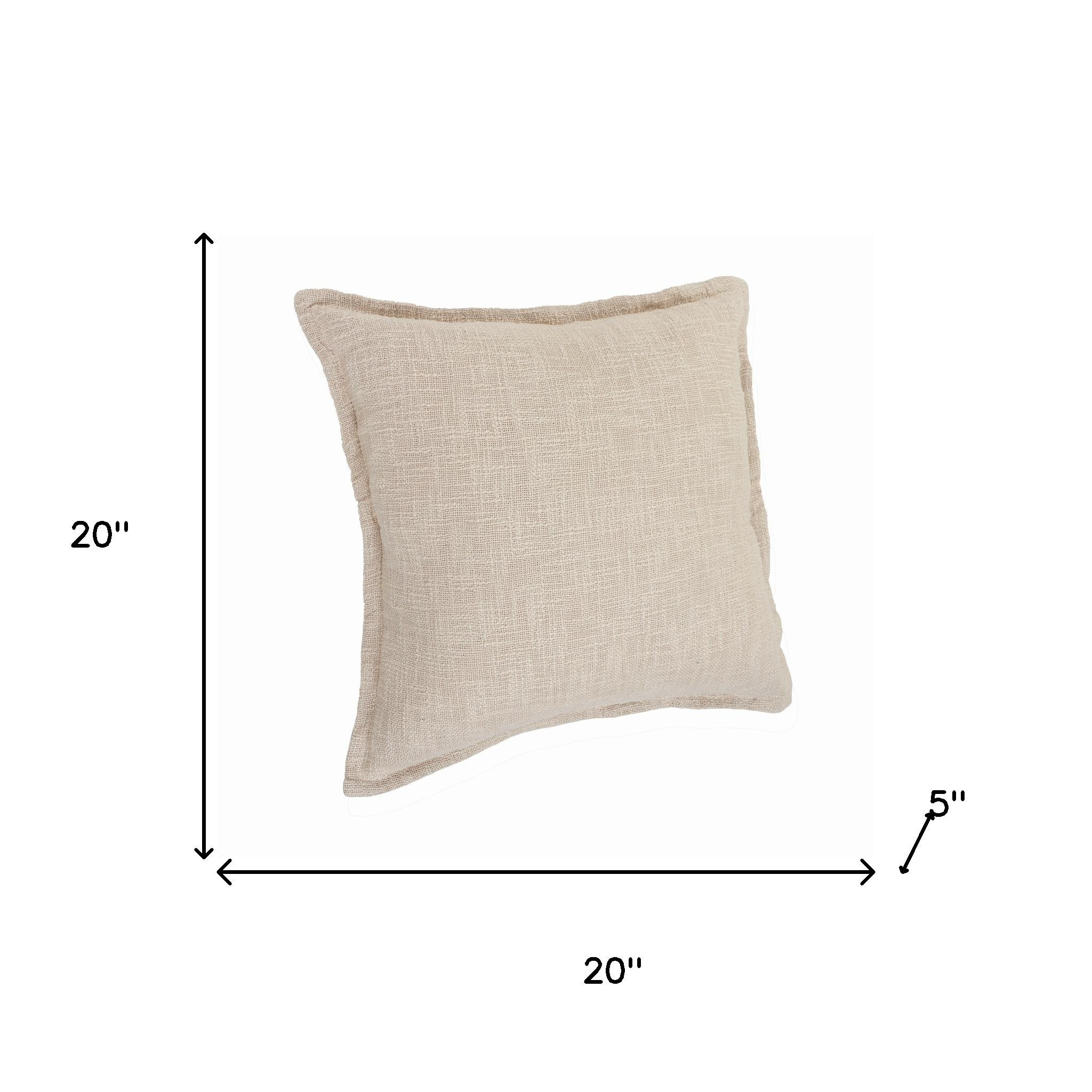 This set of two cream and beige cotton throw pillows will add a beautiful decorative accent to your decor. These cream and beige hued pillows represent quality construction, expertly made from durable cotton that is not only long lasting but super soft to the touch as well. For anyone that loves to decorate or accent their space with color and texture. Decorative throw pillows not only add color and dimension to your space but can be comfy and supportive when you are lounging and cuddling as well. 20.00-inch h x 20.00-inch w x 5.00-inch d.