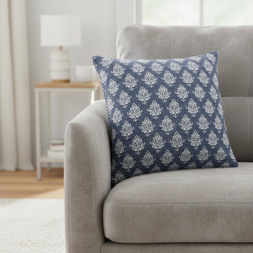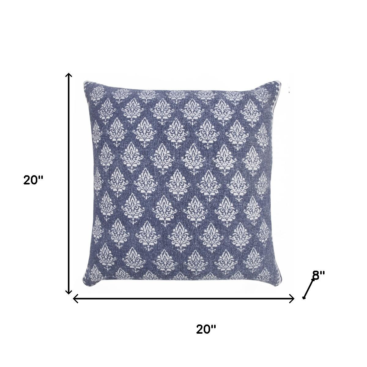 Add an air of fashion to your room and rejuvenate the space with this cute and fashionable 20-inch blue and white damask cotton throw pillow. This blue and white hued piece represents quality construction, expertly made from durable cotton that is not only long lasting but soft to the touch as well. Decorative pillows are a great way to change up the look and feel of your space easily and quickly. A great decorative accessory to add color and dimension to your favorite chair, accent your sofa, or to use as part of your bed ensemble. 20.00-inch h x 20.00-inch w x 8.00-inch d.