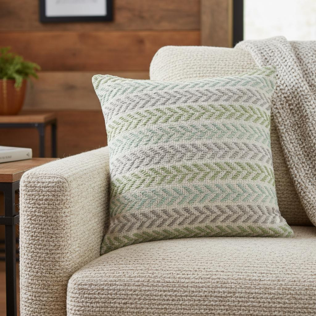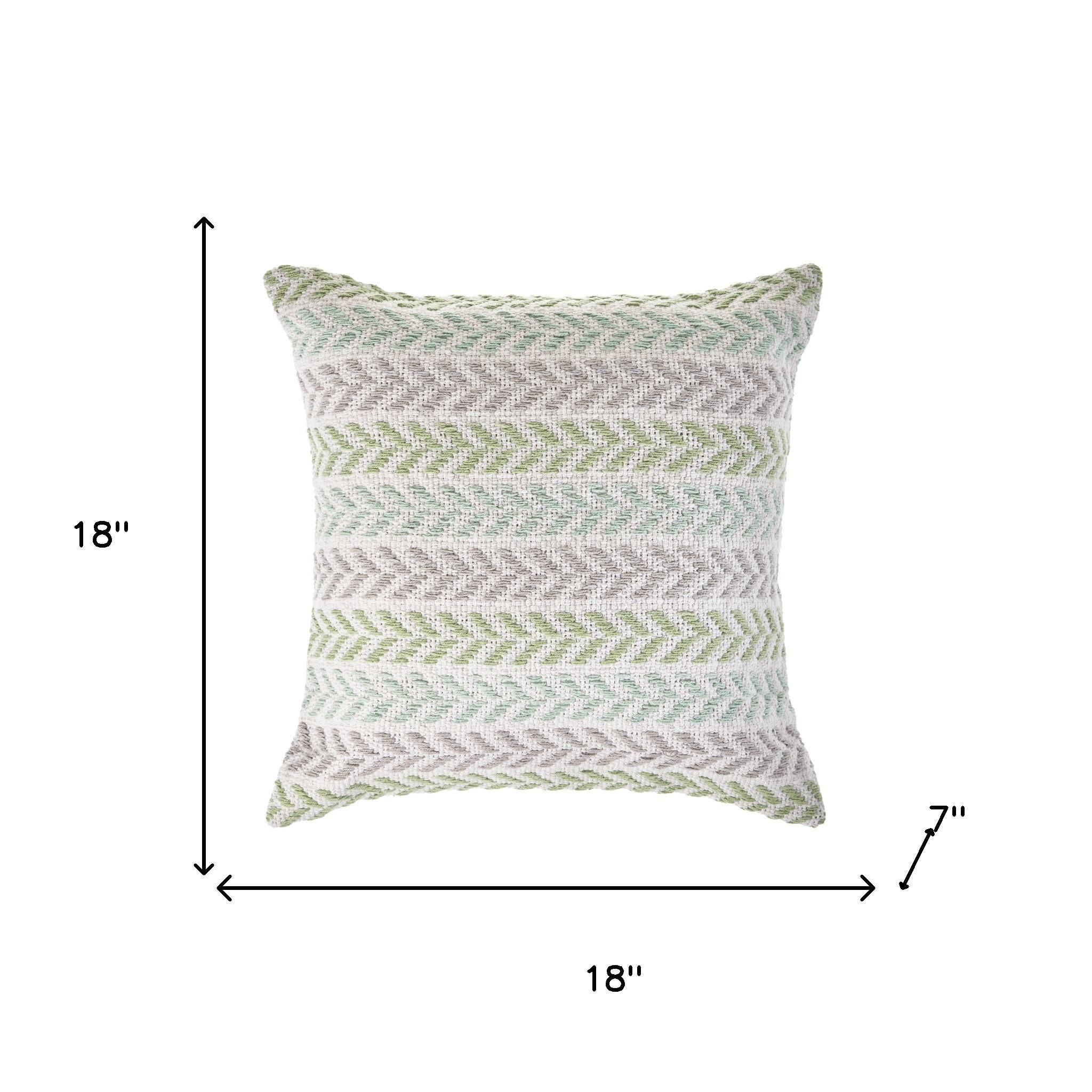 Add an air of fashion to your room and rejuvenate the space with this cute and fashionable 18-inch green and blue chevron cotton throw pillow with texture. This soft and durable decorative pillow is expertly made of high grade, long lasting cotton in a green and blue coloration. Decorative pillows are a great way to change up the look and feel of your space easily and quickly. Decorative throw pillows not only add color and dimension to your space but can be comfy and supportive when you are lounging and cuddling as well. 18.00-inch h x 18.00-inch w x 7.00-inch d.