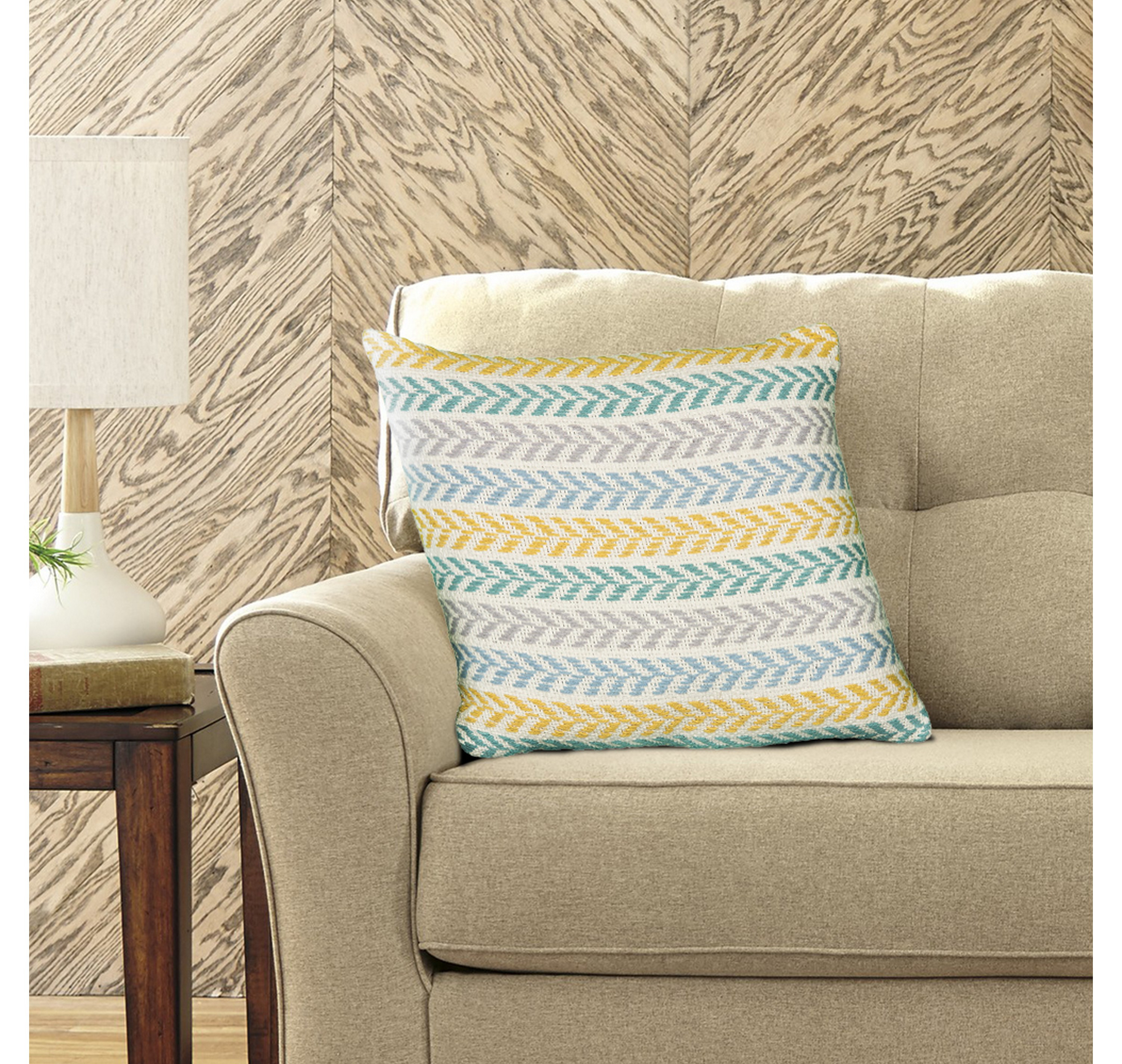 This set of two yellow and blue chevron cotton throw pillows with texture will add a beautiful decorative accent to your decor. This yellow and blue colored decorative pillow set is made from high grade cotton that is durable and soft to the touch. For anyone that loves to decorate or accent their space with color and texture. Decorative throw pillows not only add color and dimension to your space but can be comfy and supportive when you are lounging and cuddling as well. 18.00-inch h x 18.00-inch w x 7.00-inch d.