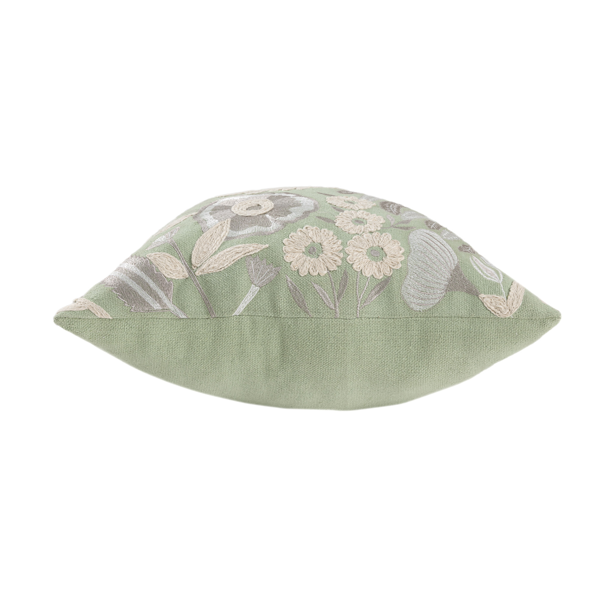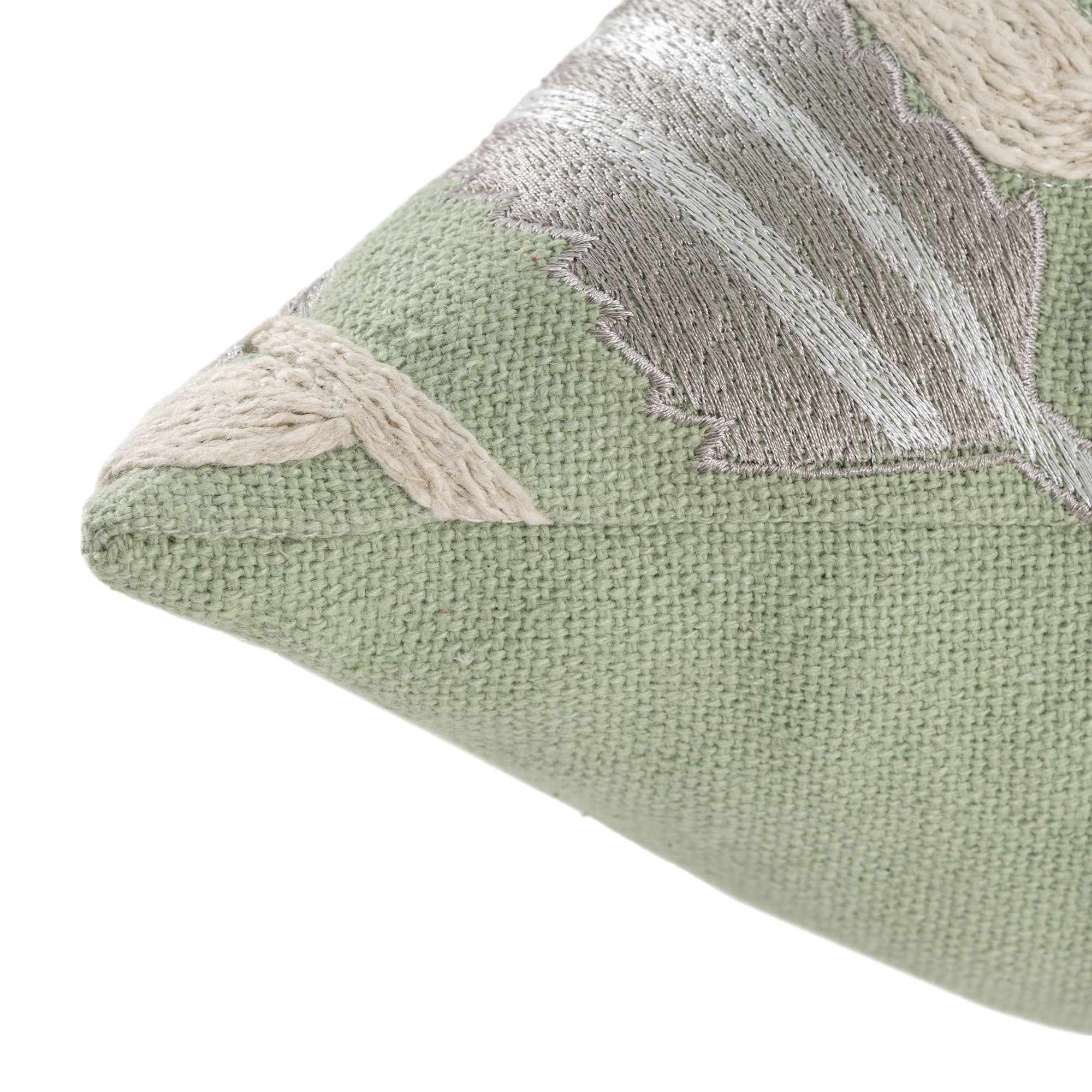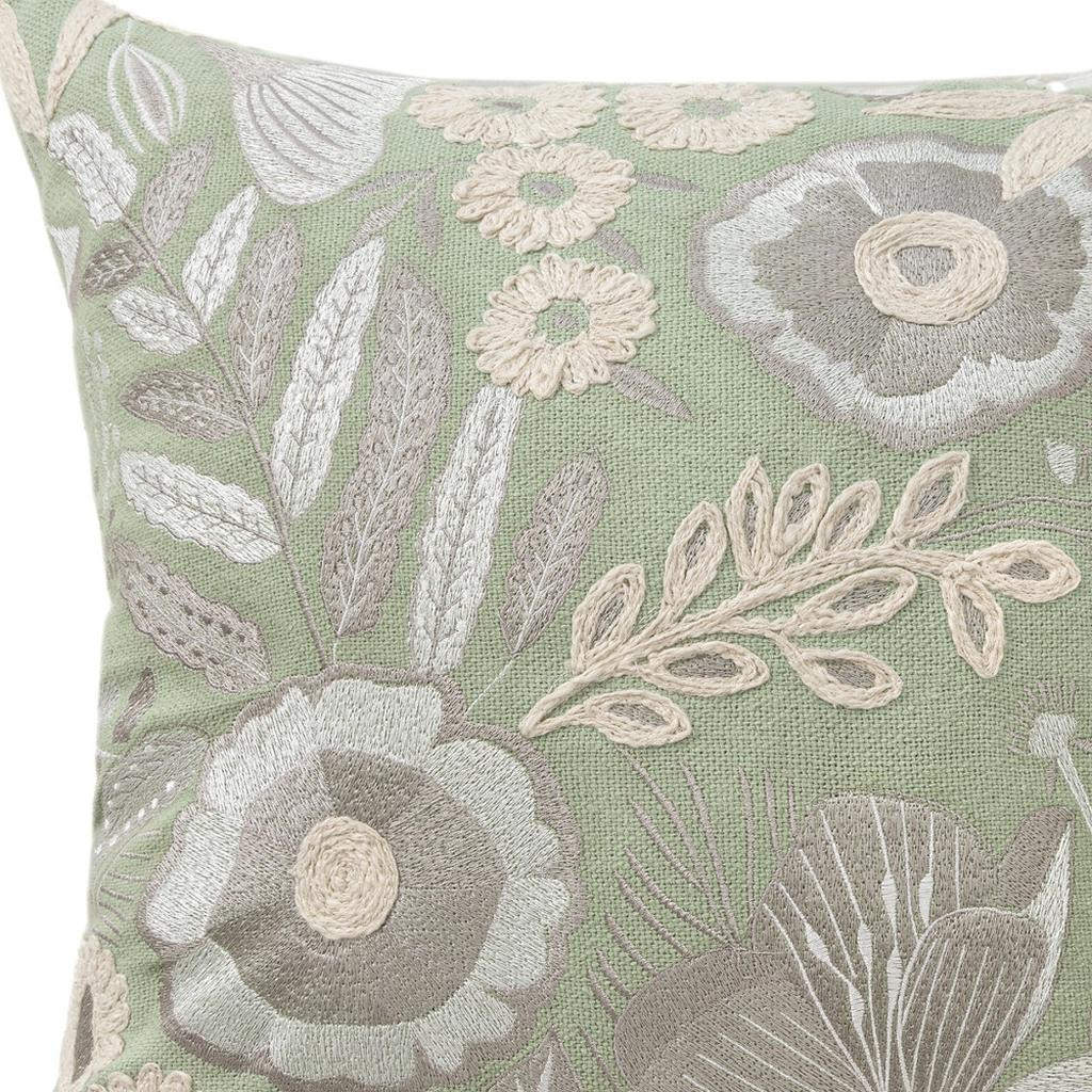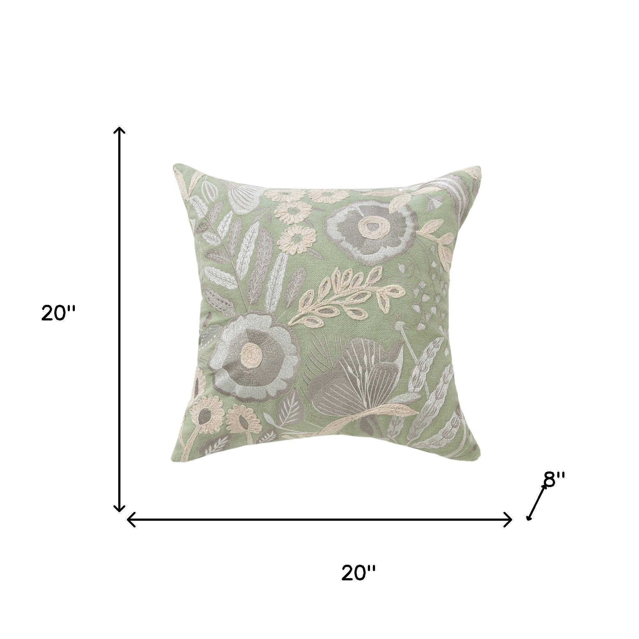 The 20-inch green and ivory floral cotton throw pillow with embroidery is the perfect decorative accessory for your home. The green and ivory coloring of the extremely durable and long lasting cotton will add dimension and texture to your space. Decorative touches that are embroidered give this great design some beautiful texture along with a hand-crafted look and feel. Great to use on its own or mix with other decorations for the perfect look. Decorative throw pillows not only add color and dimension to your space but can be comfy and supportive when you are lounging and cuddling as well. 20.00-inch h x 20.00-inch w x 8.00-inch d.