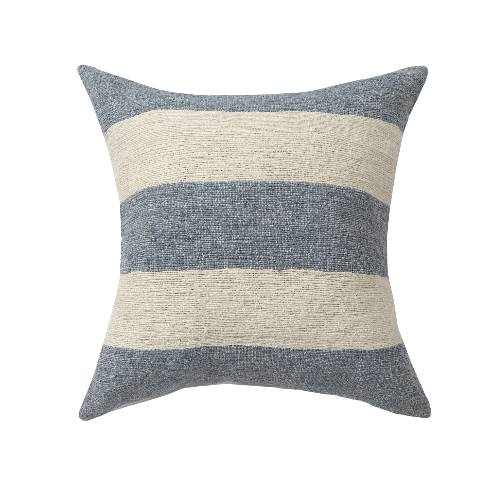 striped linen blend throw pillow, linen blend throw pillow, blend throw pillow, 24" blue ivory striped linen, ivory striped linen blend throw |