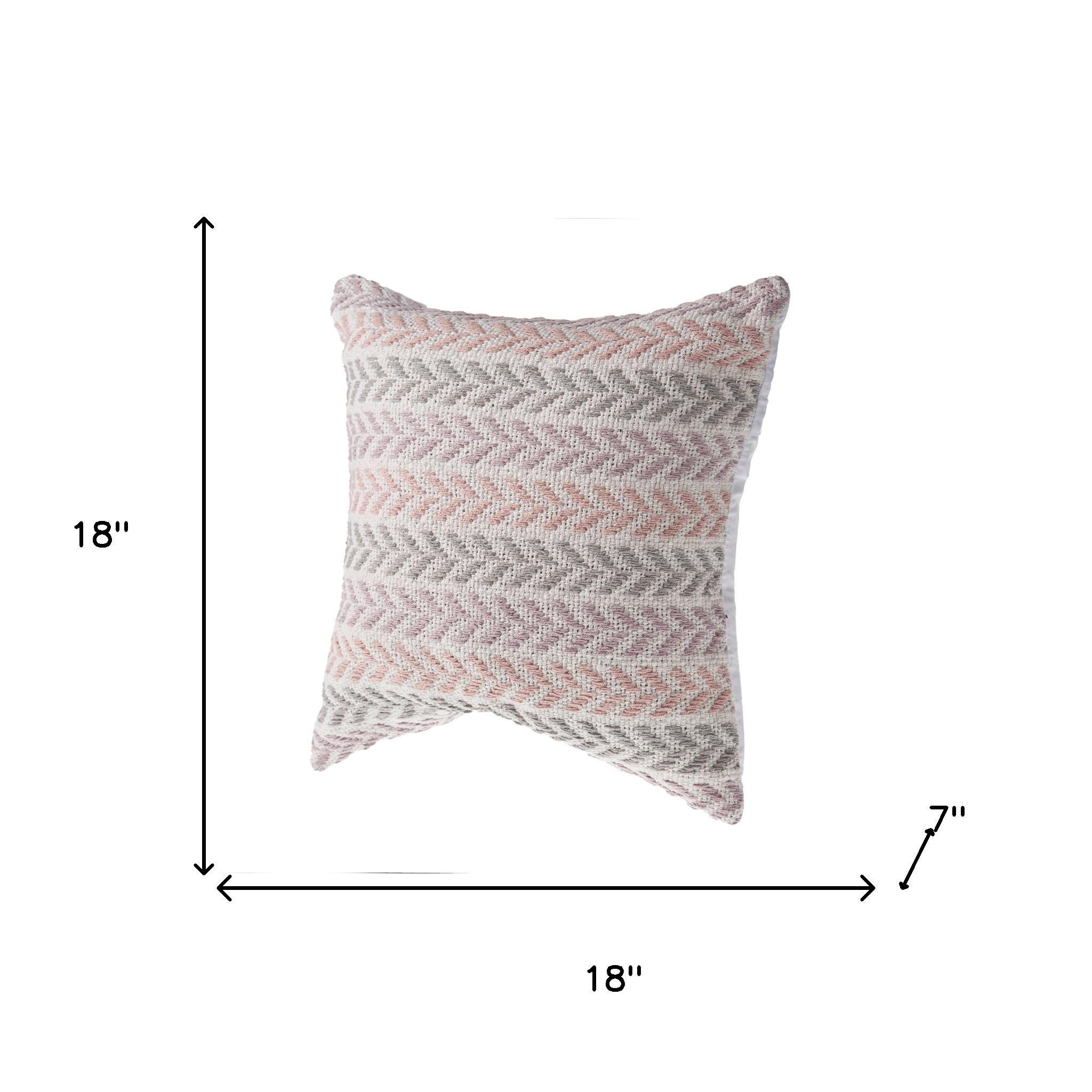 The perfect complement to your sofa, favorite chair, or bed, this set of four lilac and white chevron cotton throw pillows with texture is a great decorative accent. This lilac and white colored decorative pillow set is made from high grade cotton that is durable and soft to the touch. Great to use on its own or mix with other decorations for the perfect look. Decorative throw pillows not only add color and dimension to your space but can be comfy and supportive when you are lounging and cuddling as well. 18.00-inch h x 18.00-inch w x 7.00-inch d.