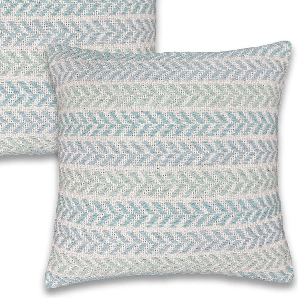 This set of two blue and white chevron cotton throw pillows with texture will add a beautiful decorative accent to your decor. This blue and white colored decorative pillow set is made from high grade cotton that is durable and soft to the touch. For anyone that loves to decorate or accent their space with color and texture. A great decorative accessory to add color and dimension to your favorite chair, accent your sofa, or to use as part of your bed ensemble. 18.00-inch h x 18.00-inch w x 7.00-inch d.