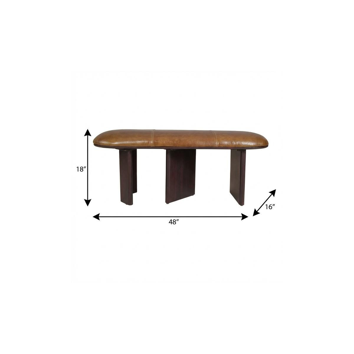 Add a good looking decorative accent to your space that is also practical for seating. A light brown coloration runs throughout this good looking solid wood and upholstery bench. Expertly upholstered with padding in a soft solid color genuine leather, this bench is as comfortable as it is good looking. Ideal for entrance foyer, hallway, or laundry room. This bench is a great place store your keys, put on your shoes, or be a catchall on your way in or out. Benches don't have to be unsightly. Increase your seating and the fashion quotient of your room all at the same time with this hard wearing, versatile, and good looking bench. 18.00-inch h x 48.00-inch w x 16.00-inch d.