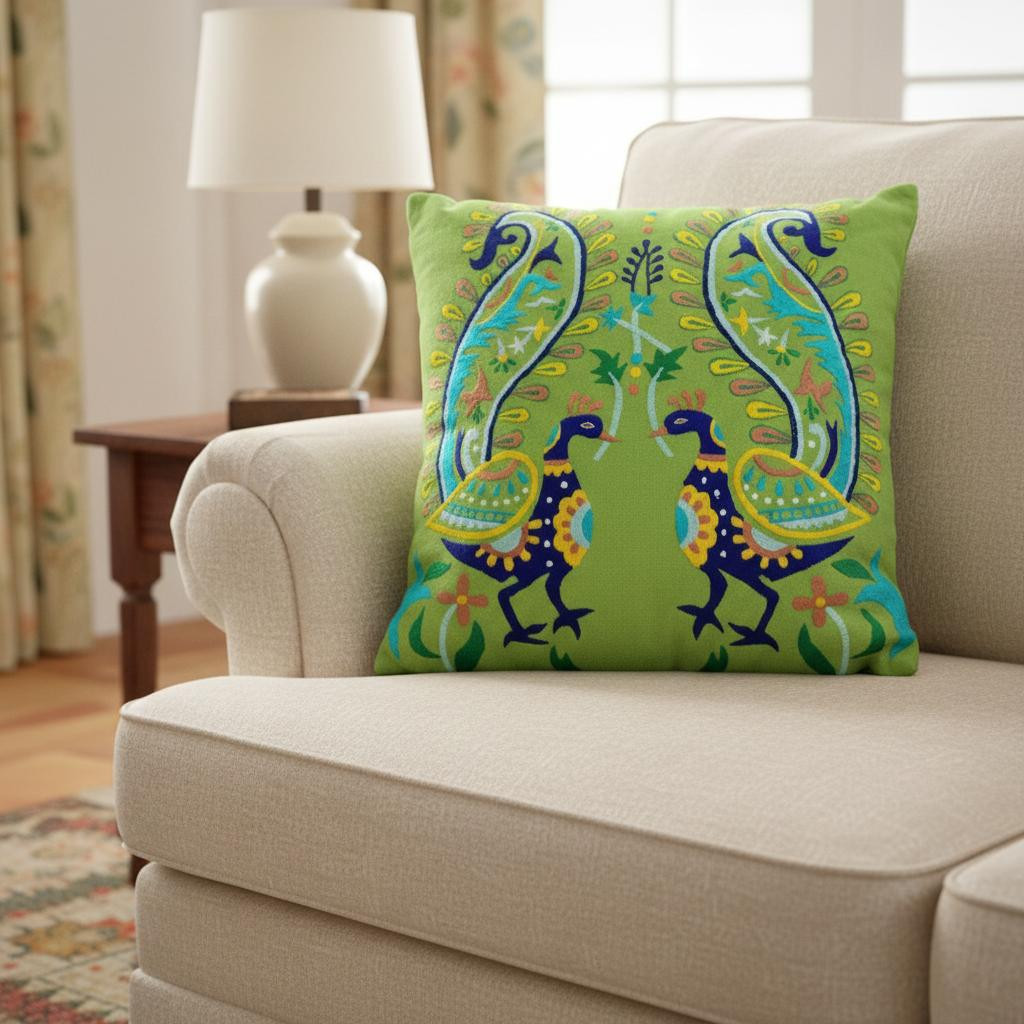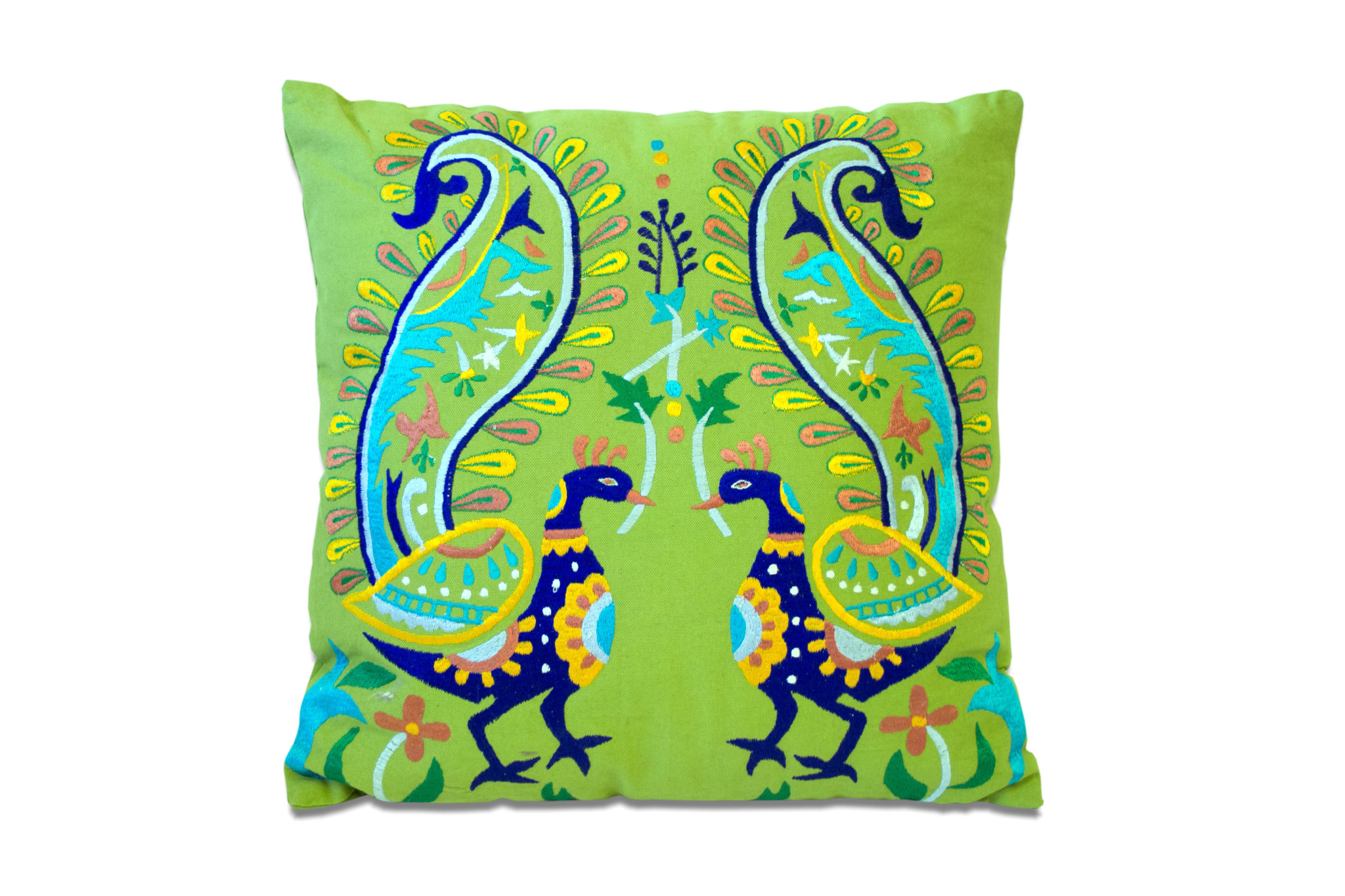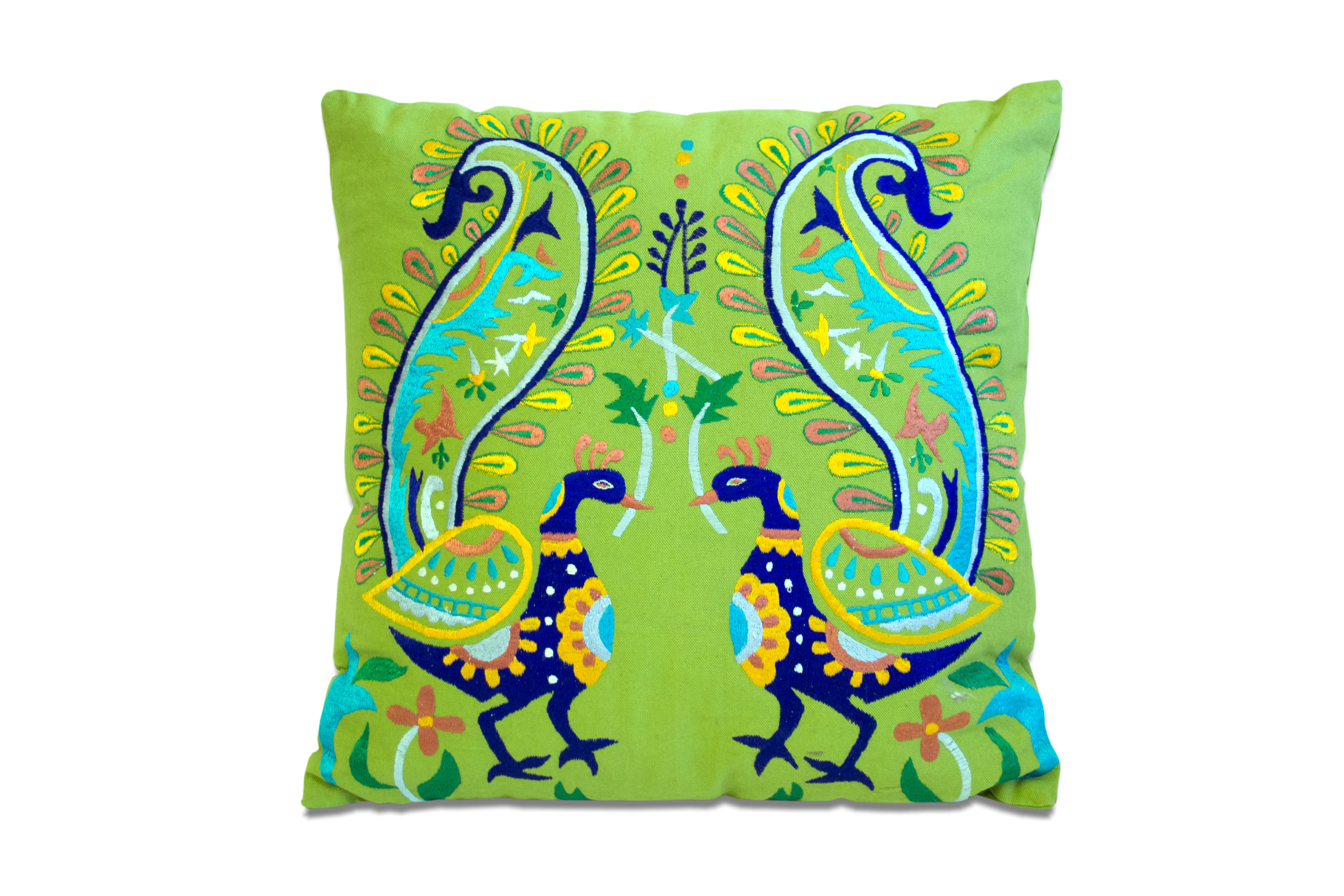 The perfect complement to your sofa, favorite chair, or bed, this set of two 18-inch blue and green peacock cotton throw pillows with embroidery is a great decorative accent. These blue and green hued pillows represent quality construction, expertly made from durable cotton that is not only long lasting but super soft to the touch as well. Decorative touches that are embroidered give this great design some beautiful texture along with a hand-crafted look and feel. This soft polyfill filled pillow not only is decorative but made to be comfy and cozy all day long. Decorative pillows are a great way to change up the look and feel of your space easily and quickly. A great decorative accessory to add color and dimension to your favorite chair, accent your sofa, or to use as part of your bed ensemble. 18.00-inch h x 18.00-inch w x 3.90-inch d.