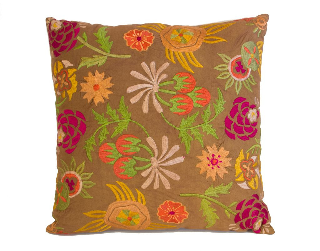 The perfect complement to your sofa, favorite chair, or bed, this set of two 20-inch brown green and pink floral cotton throw pillows with embroidery is a great decorative accent. Decorative abstract floral and botanical designs are embroidered on the front to give this pillow not only great design but some beautiful texture along with a hand-crafted look and feel. This soft polyfill filled pillow not only is decorative but made to be comfy and cozy all day long. Decorative throw pillows not only add color and dimension to your space but can be comfy and supportive when you are lounging and cuddling as well. 20.00-inch h x 20.00-inch w x 3.90-inch d.