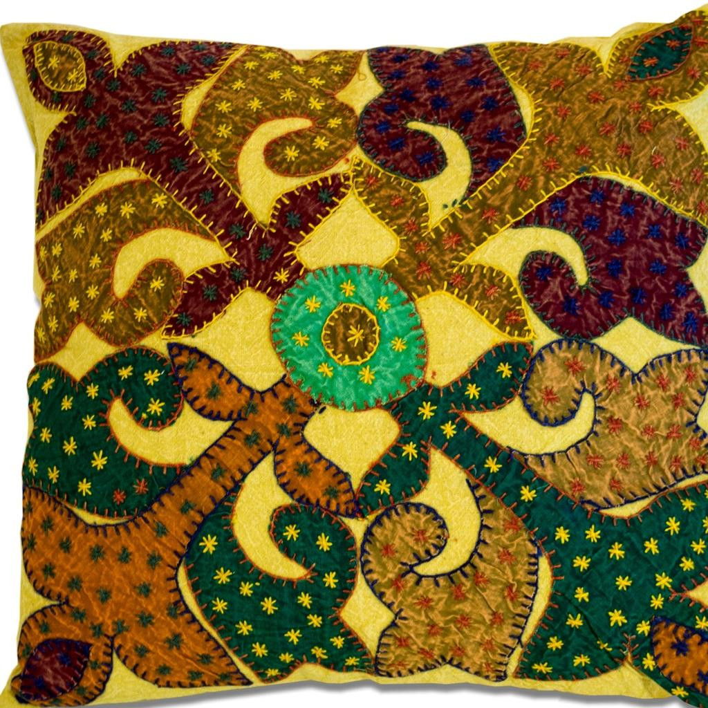 Bring a bit of fashion and zip to your space with this eye-catching and comfy set of two 16-inch brown and green patchwork floral cotton throw pillows with applique and embroidery. The earthy coloring of the durable and long lasting cotton pillows will add a sense of style, while the intricate embroidery and patchwork applique will add dimension, texture, and hand-crafted appeal. Super soft and built to hold its shape, this polyfill-filled pillow is a great option. A great decorative accessory to add color and dimension to your favorite chair, accent your sofa, or to use as part of your bed ensemble. 16.00-inch h x 16.00-inch w x 3.90-inch d.