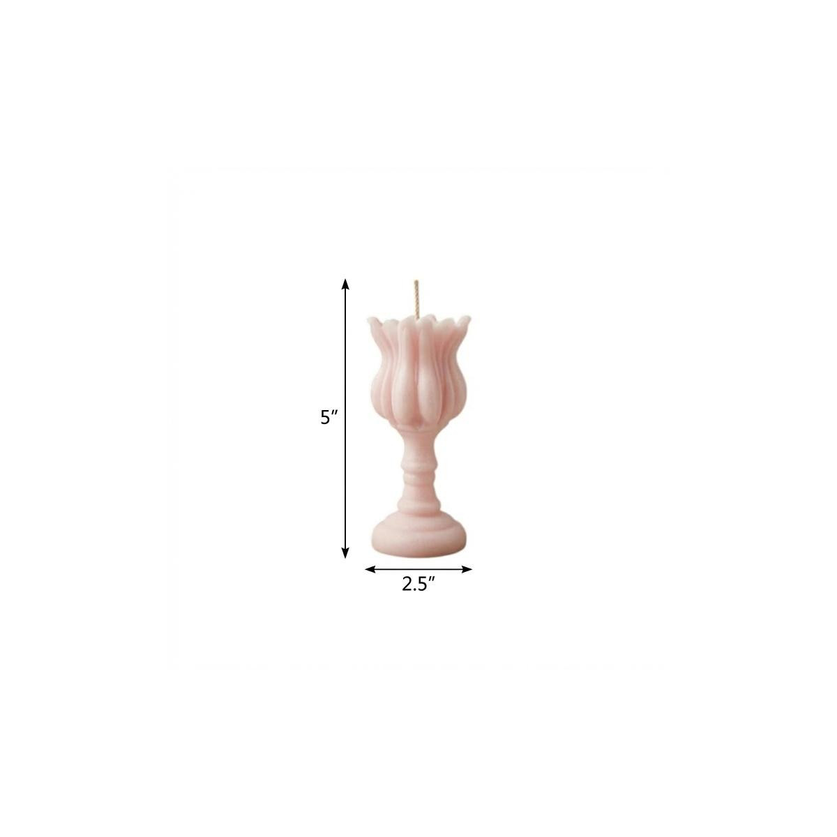 Don't miss out on the enchantment of candlelight. Embrace the convenience and beauty of this 5-inch pink lily of the valley scented dimensional flower candle today. This candle is a great way to add a pop of your personality to your home and add a touch of fun. Whether you prefer classic, elegant designs or trendy and modern styles, our lily of the valley scented candle offers versatility in enhancing the visual appeal of your space. Let the warm glow of candlelight create an intimate and welcoming ambiance for your guests or a soothing atmosphere for yourself. 5.00-inch h x 2.50-inch w x 2.50-inch d.