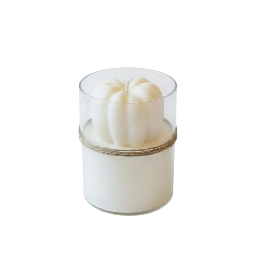 Whether it's a romantic dinner, a relaxing bath, or a special celebration, this 3-inch ivory pumpkin and latte scented candle in clear glass cylinder holder is the perfect complement to any occasion. Transform your space into a sanctuary of serenity with the captivating allure of our jar candle. Designed with an aromatic pumpkin and latte fragrance for you to enjoy. Includes a glass holder to complete the look. Let the warm glow of candlelight create an intimate and welcoming ambiance for your guests or a soothing atmosphere for yourself. 4.00-inch h x 3.00-inch w x 3.00-inch d.