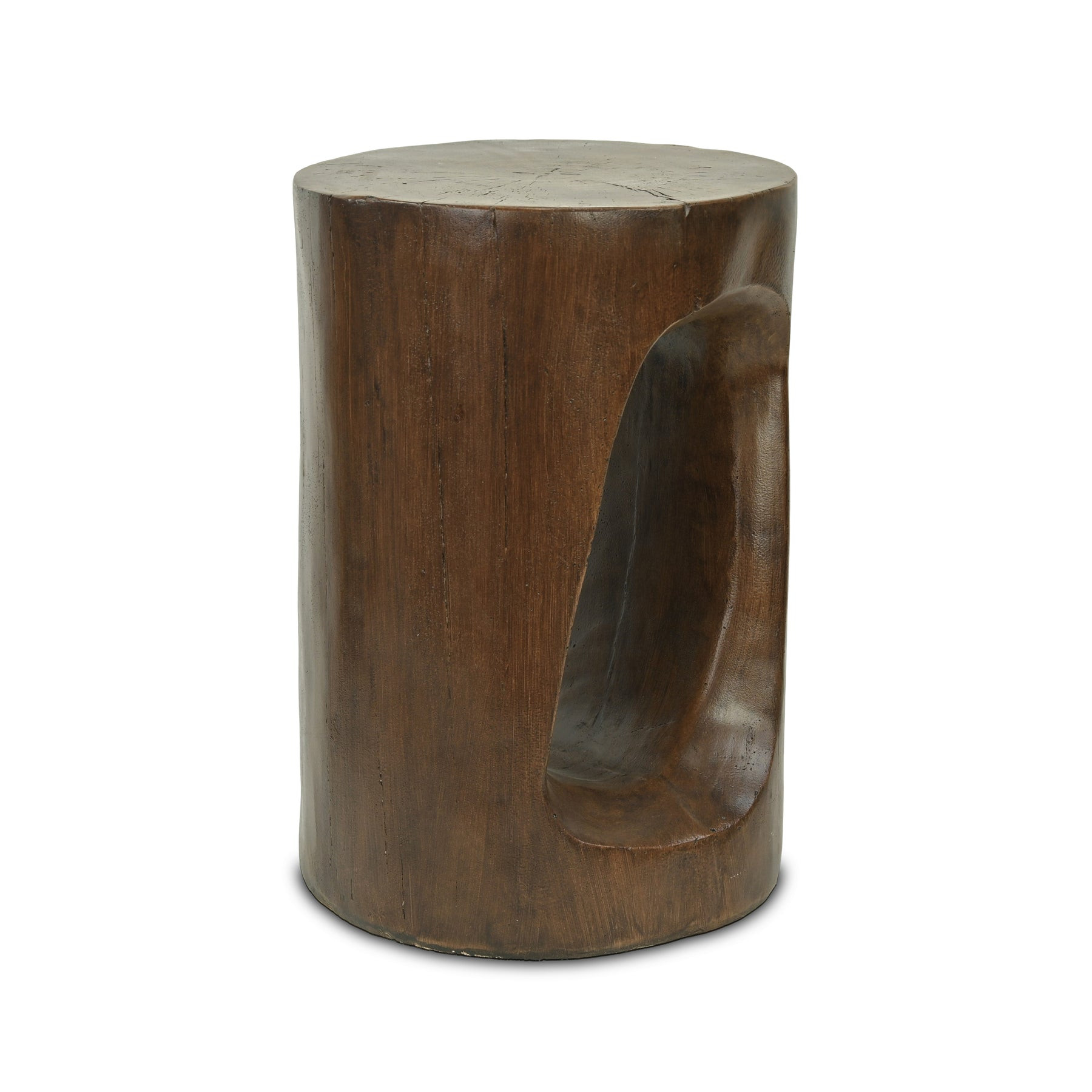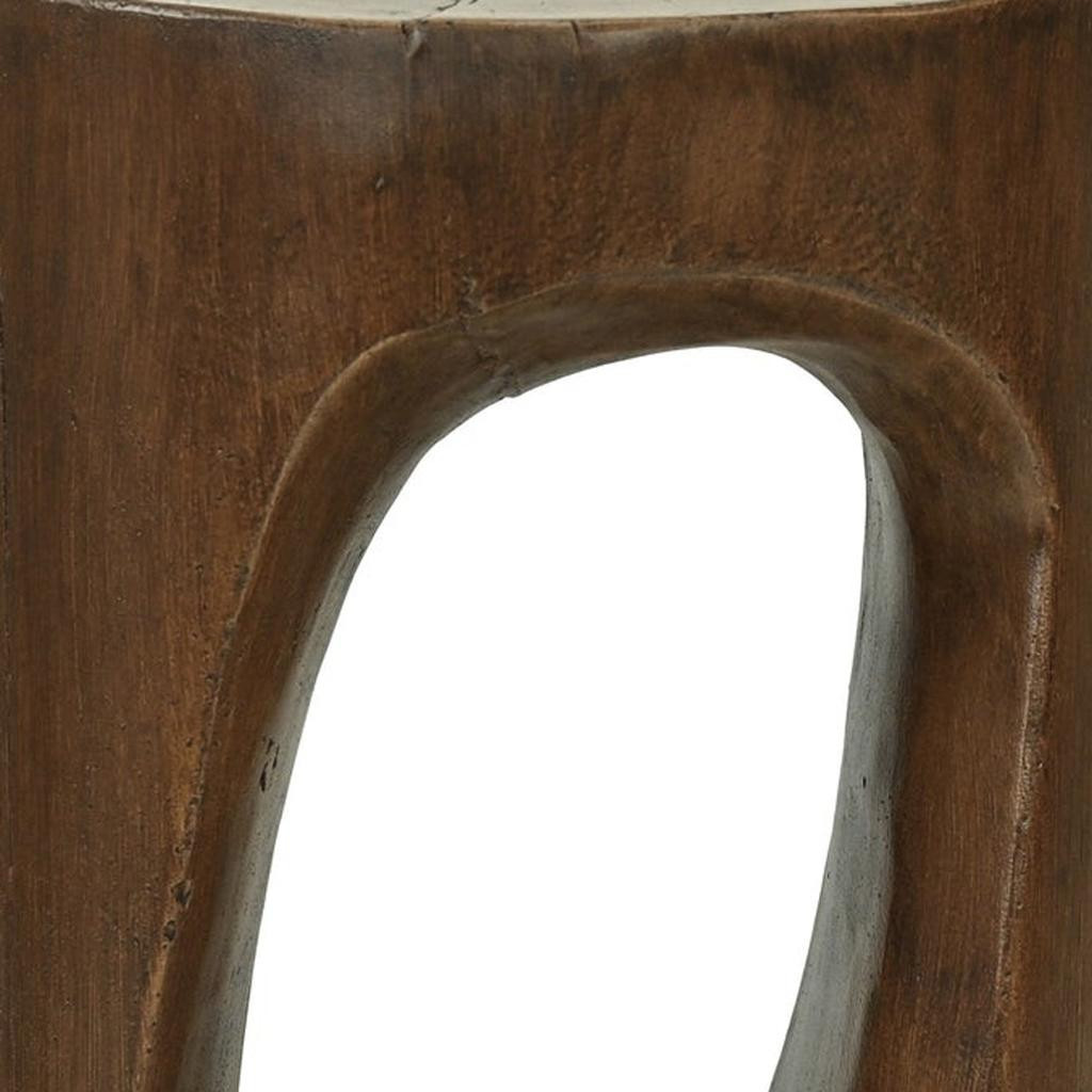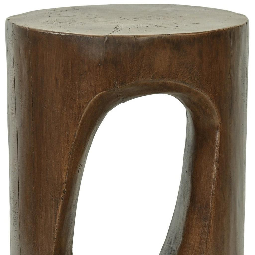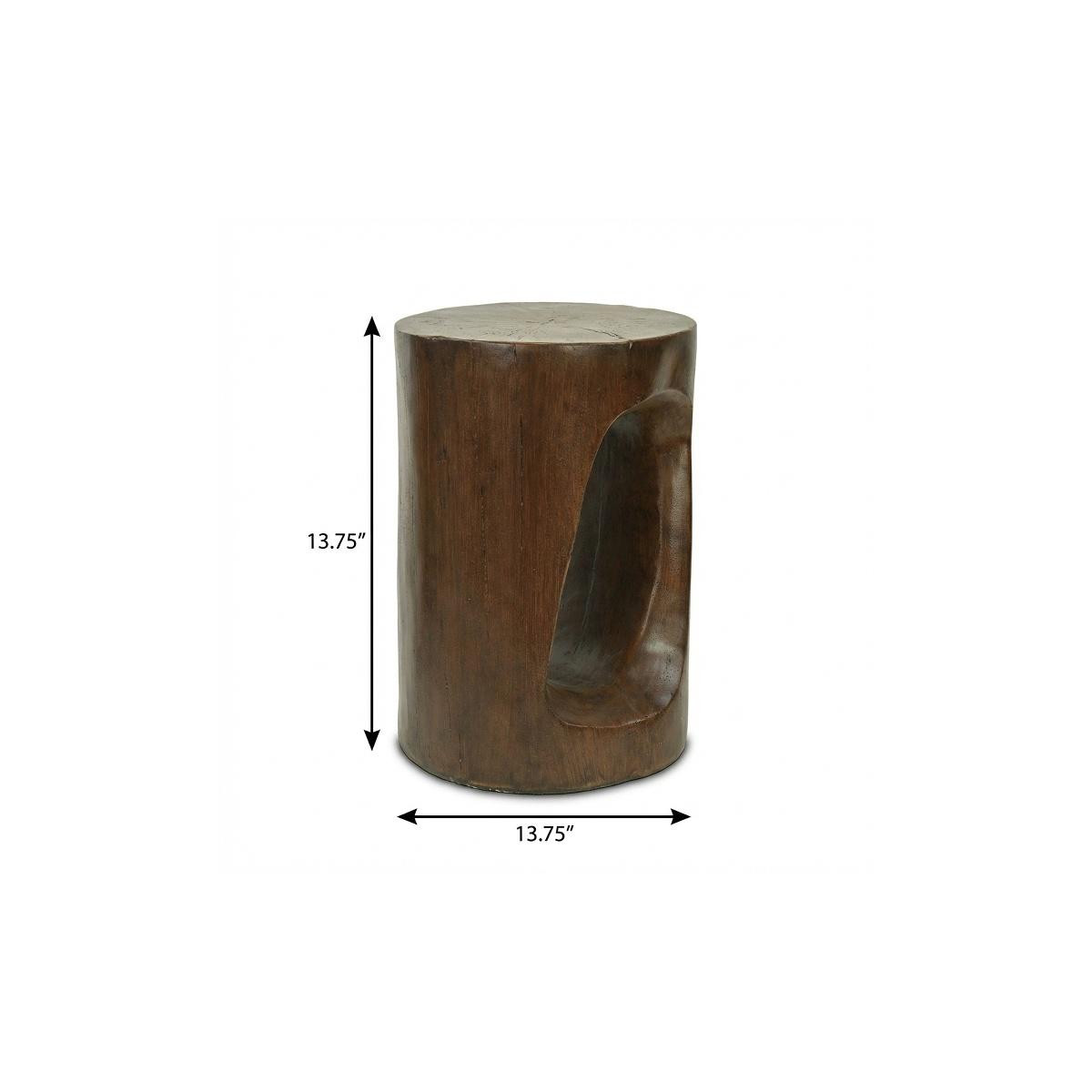 Optimize your space and add some charm to your room with the 14-inch brown faux stone round tree stump end table. This table is made from faux stone in a brown color throughout the base and top. An ideal location for placing your snacks and drinks, and a place to keep your lamp, frames, or other accessories. You can also use it as an entryway table to hold your keys. 13.75-inch h x 13.75-inch w x 20.25-inch d.