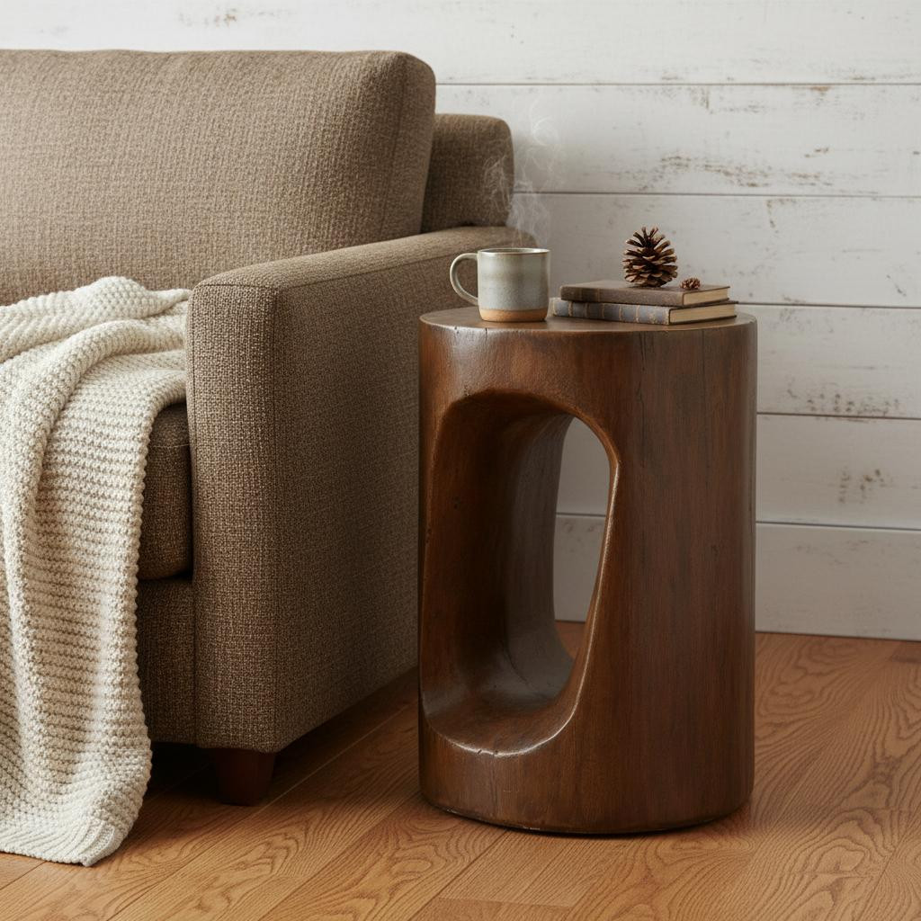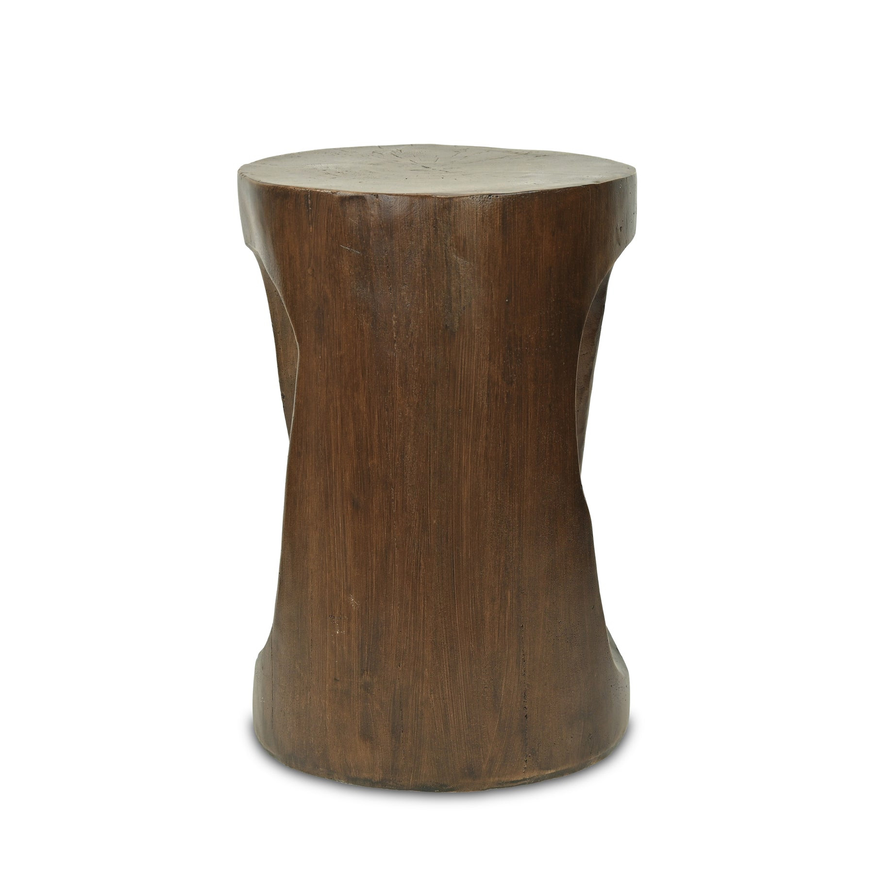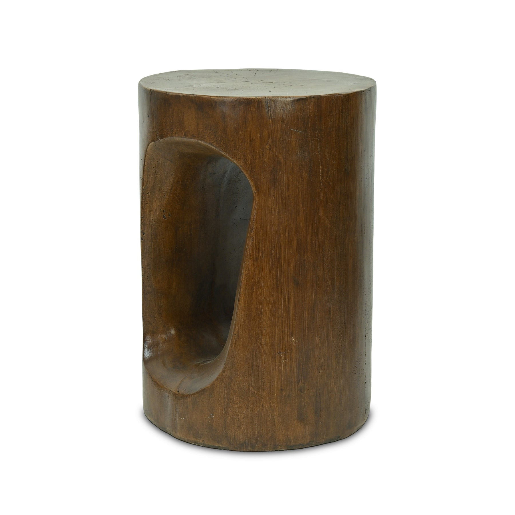Optimize your space and add some charm to your room with the 14-inch brown faux stone round tree stump end table. This table is made from faux stone in a brown color throughout the base and top. An ideal location for placing your snacks and drinks, and a place to keep your lamp, frames, or other accessories. You can also use it as an entryway table to hold your keys. 13.75-inch h x 13.75-inch w x 20.25-inch d.