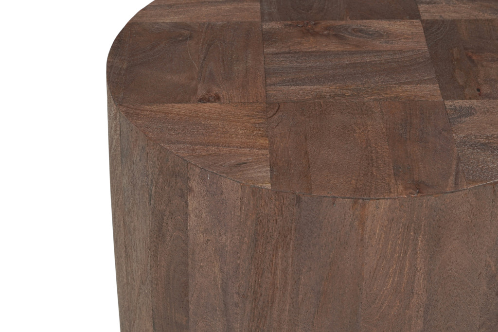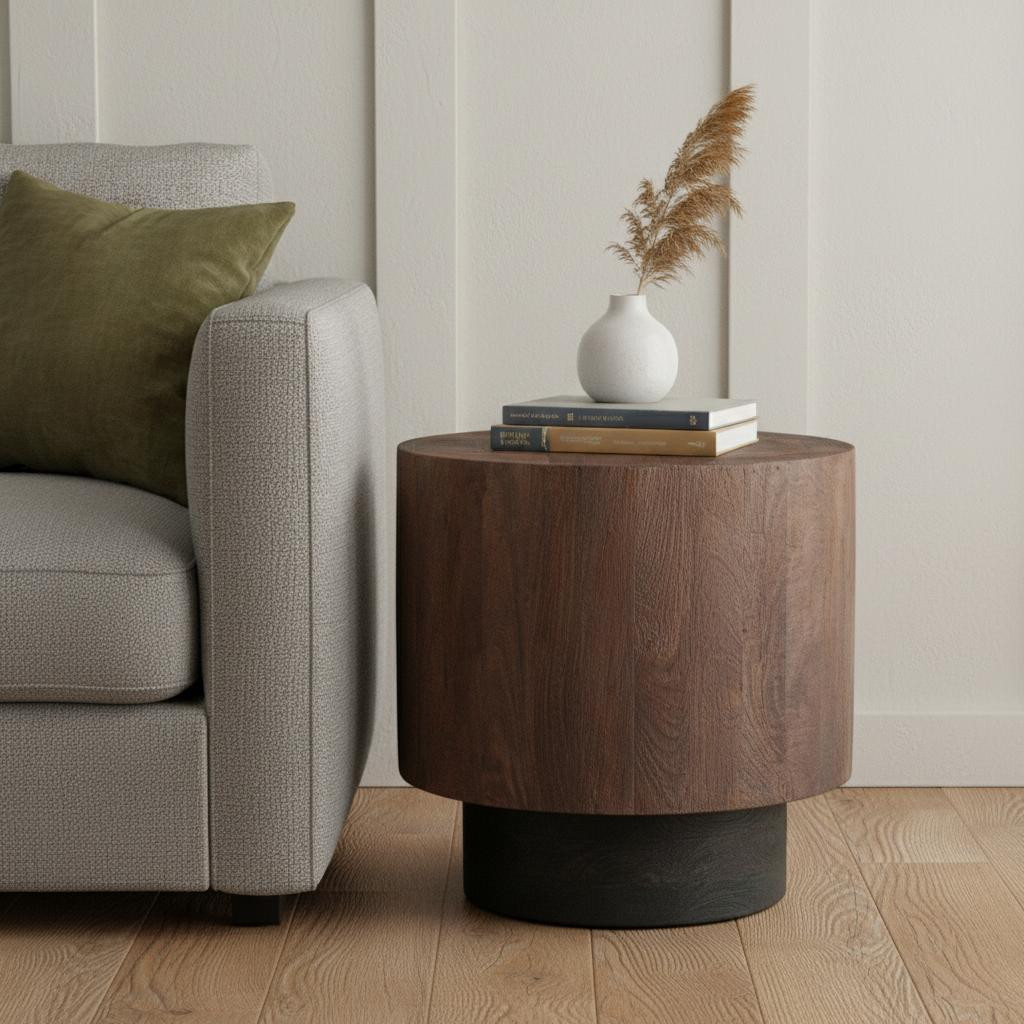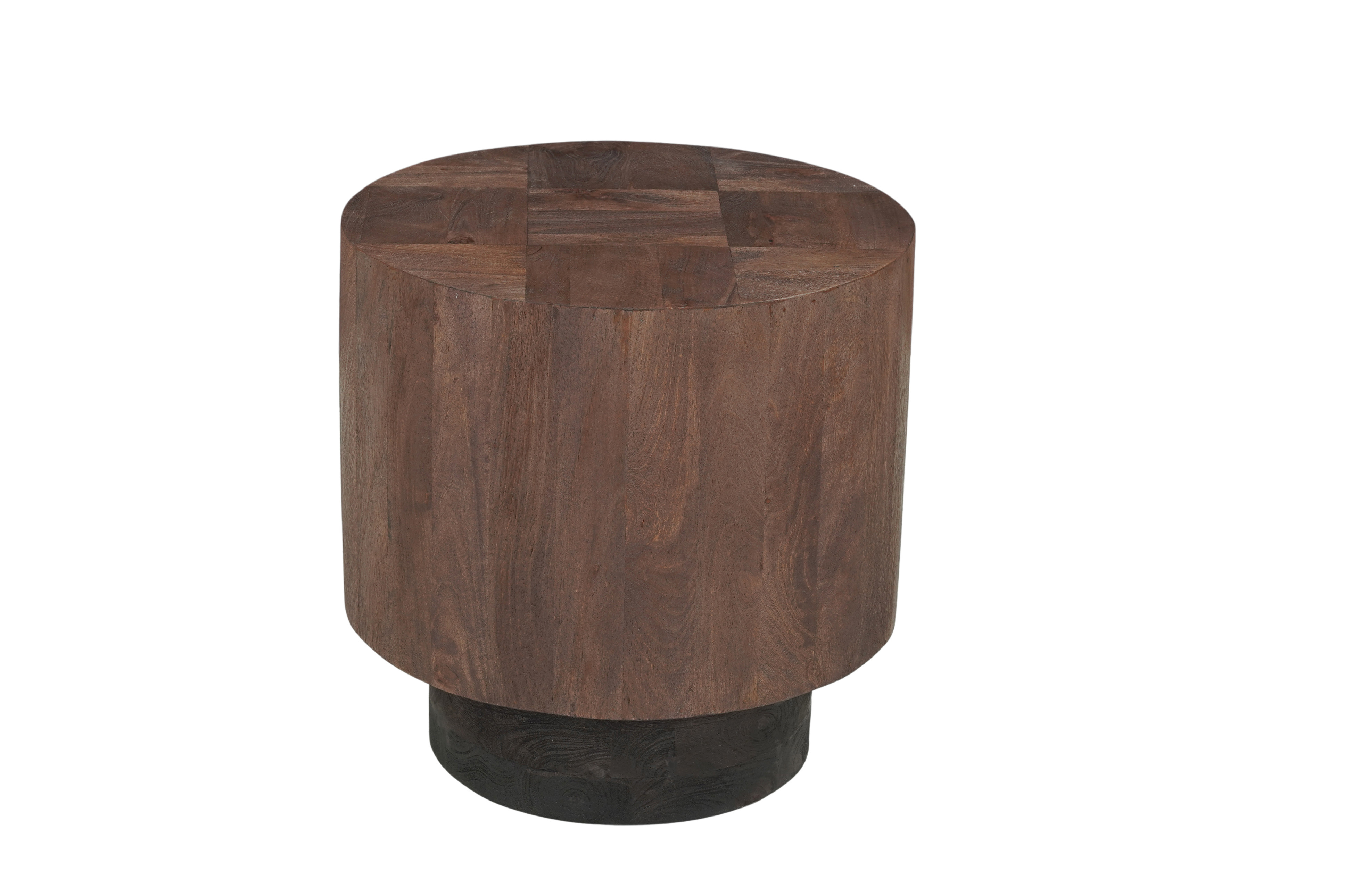 Distinctive in style the 22-inch brown solid wood round pedestal end table radiates a versatile charm. Made of solid wood, the brown coloration throughout gives this piece an updated and refreshing look. An ideal location for placing your snacks and drinks, and a place to keep your lamp, frames, or other accessories. You can also use it as an entryway table to hold your keys. 22.00-inch h x 22.00-inch w x 22.00-inch d.