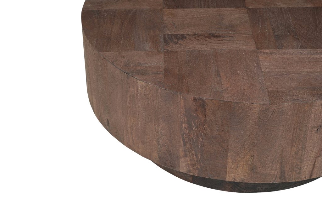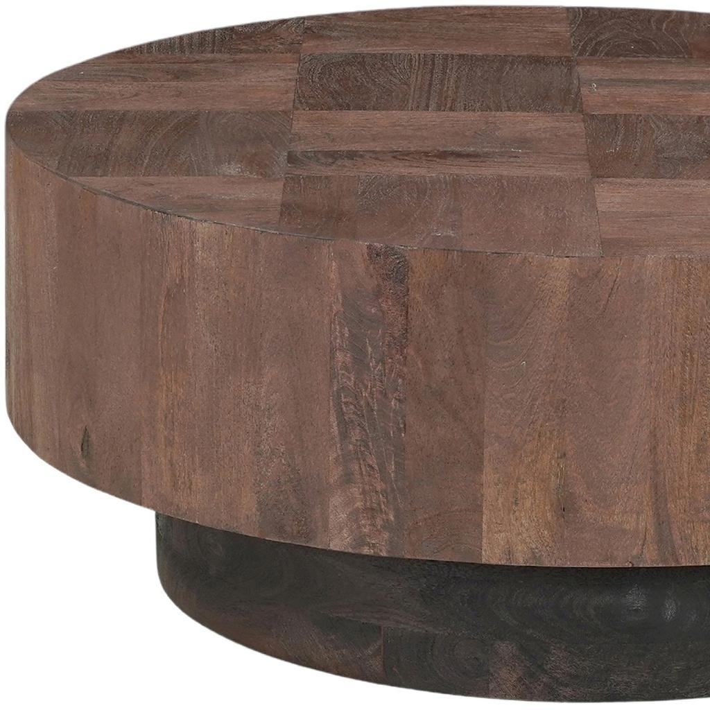 wood round pedestal coffee table, round pedestal coffee table, pedestal coffee table, solid wood round pedestal coffee, brown solid wood round pedestal |