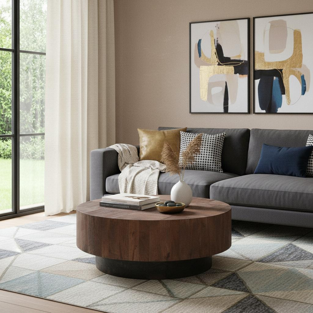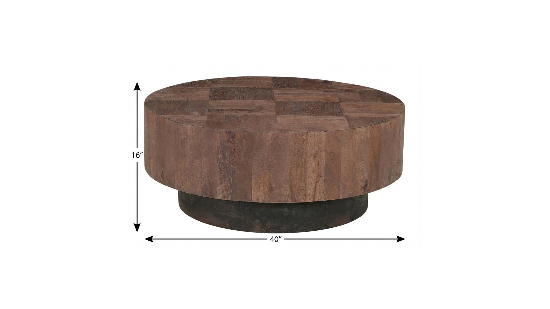 Add handsome, fashionable design to your living space with this 40-inch brown solid wood round pedestal coffee table. This table features quality construction from solid wood and an updated monotone color scheme with brown as the main color on both the top and the base. If you're looking for something that can fit into a living area, bedroom, or office, this coffee table is for you. 16.00-inch h x 40.00-inch w x 40.00-inch d.
