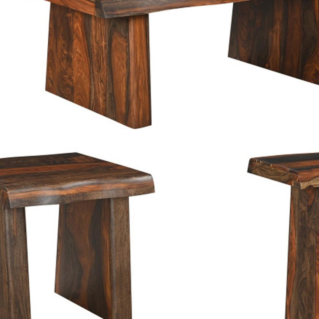 Set of three brown solid wood sled furniture set offers a charming rustic vibe to elevate your living space. Each piece is hand-crafted, showcasing the unique artistry and craftsmanship that goes into every detail. The rich brown finish enhances the natural beauty of the solid wood, creating warmth and inviting comfort. Perfect for cozy gatherings or quiet evenings, this set combines functionality with timeless design. The sled shapes provide a sense of movement and style, making it an eye-catching focal point in any room. Quality materials ensure durability while maintaining a sophisticated aesthetic, making this furniture set both a practical choice and a beautiful addition to your home décor. Enjoy a blend of comfort and style with this exquisite collection. 18.00-inch h x 51.00-inch w x 27.00-inch d.