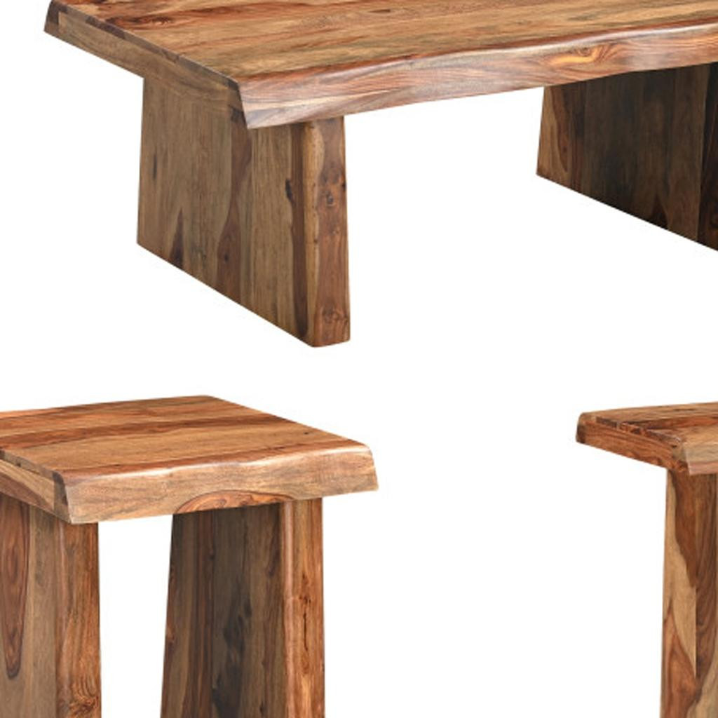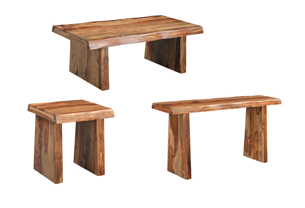 The set of three brown solid wood sled furniture set brings a rustic charm to your living space. Handcrafted with care, each piece showcases the beauty of solid wood, ensuring durability and style. The rich brown finish enhances the natural grain, making this set a timeless addition to any home. Designed with comfort in mind, it invites relaxation and gatherings with friends and family. The sled-style design offers a unique twist, blending functionality with aesthetic appeal. Transform your living room into a cozy retreat with this exquisite furniture set that complements various decor themes. Elevate your home's ambiance with this special collection that embodies quality craftsmanship and elegant simplicity. 18.00-inch h x 51.00-inch w x 27.00-inch d.