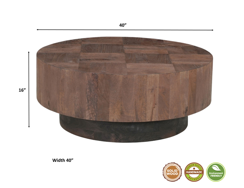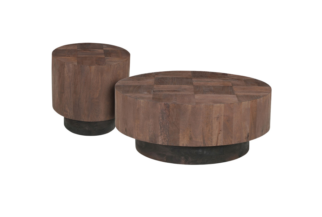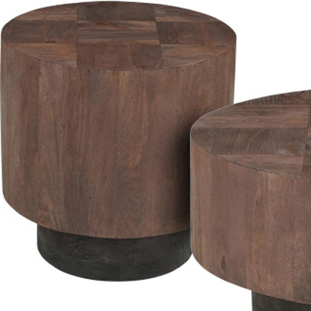 Set of two brown solid wood round pedestal furniture set offers a perfect blend of elegance and functionality. This modern furniture set enhances your living space with its sleek design and warm brown finish. Each piece is hand-crafted, showcasing exceptional craftsmanship and attention to detail. The round pedestal design adds a unique charm while providing sturdy support for your essentials. Ideal for both contemporary and traditional interiors, this set complements various decor styles effortlessly. Enjoy the versatility and aesthetic appeal it brings to your home, making it a great choice for gatherings or intimate settings. Elevate your living room with this stunning addition that merges style with practicality. 16.00-inch h x 40.00-inch w x 40.00-inch d.