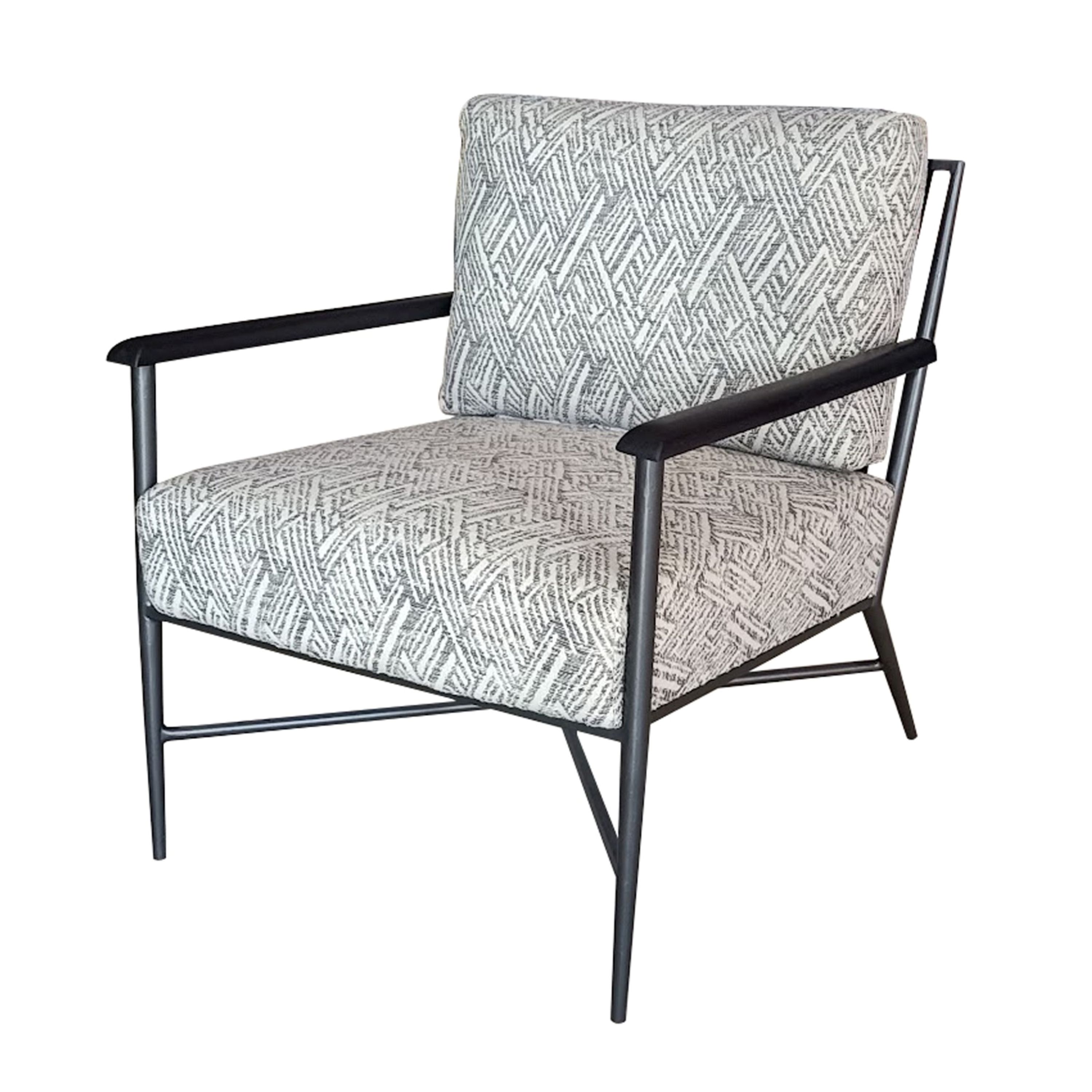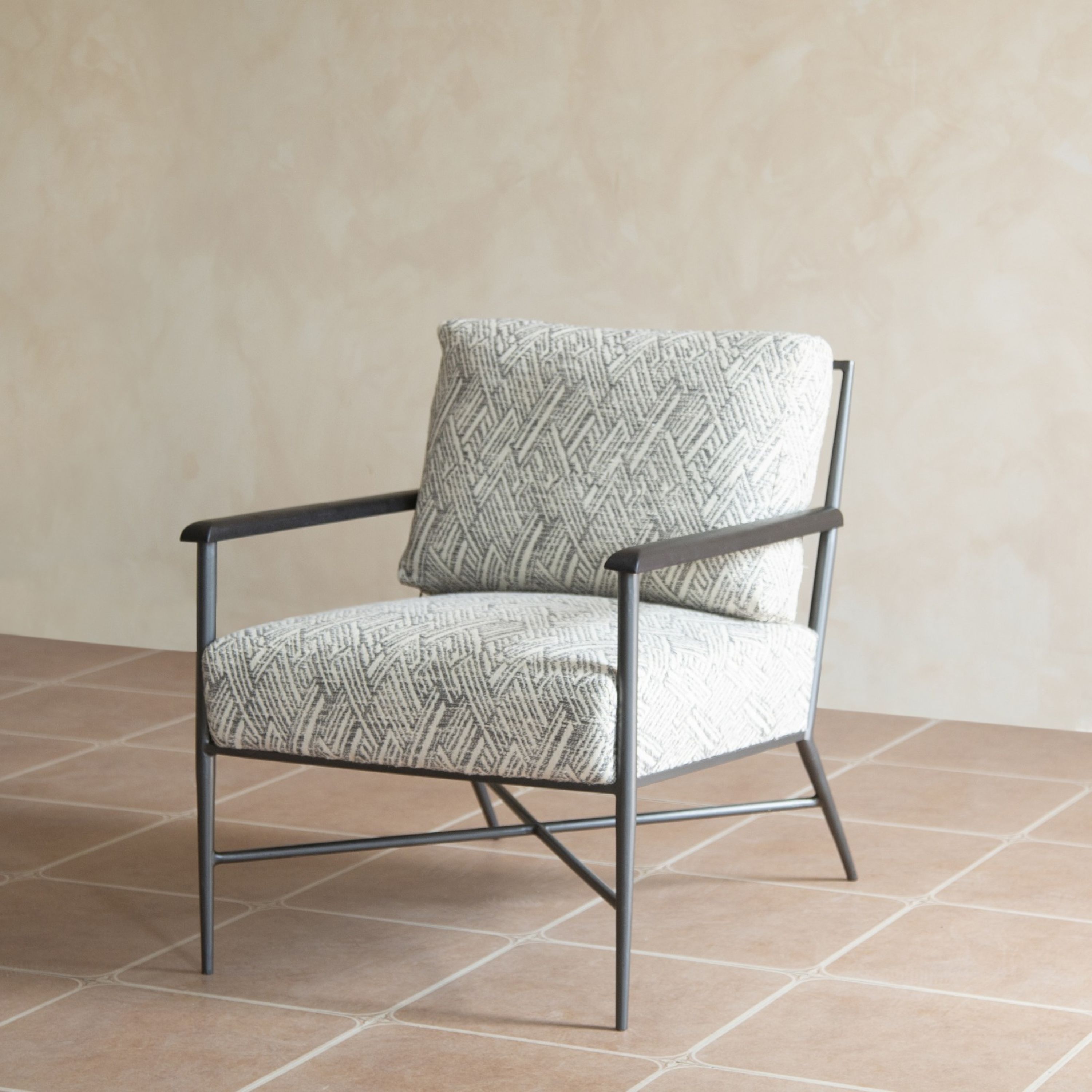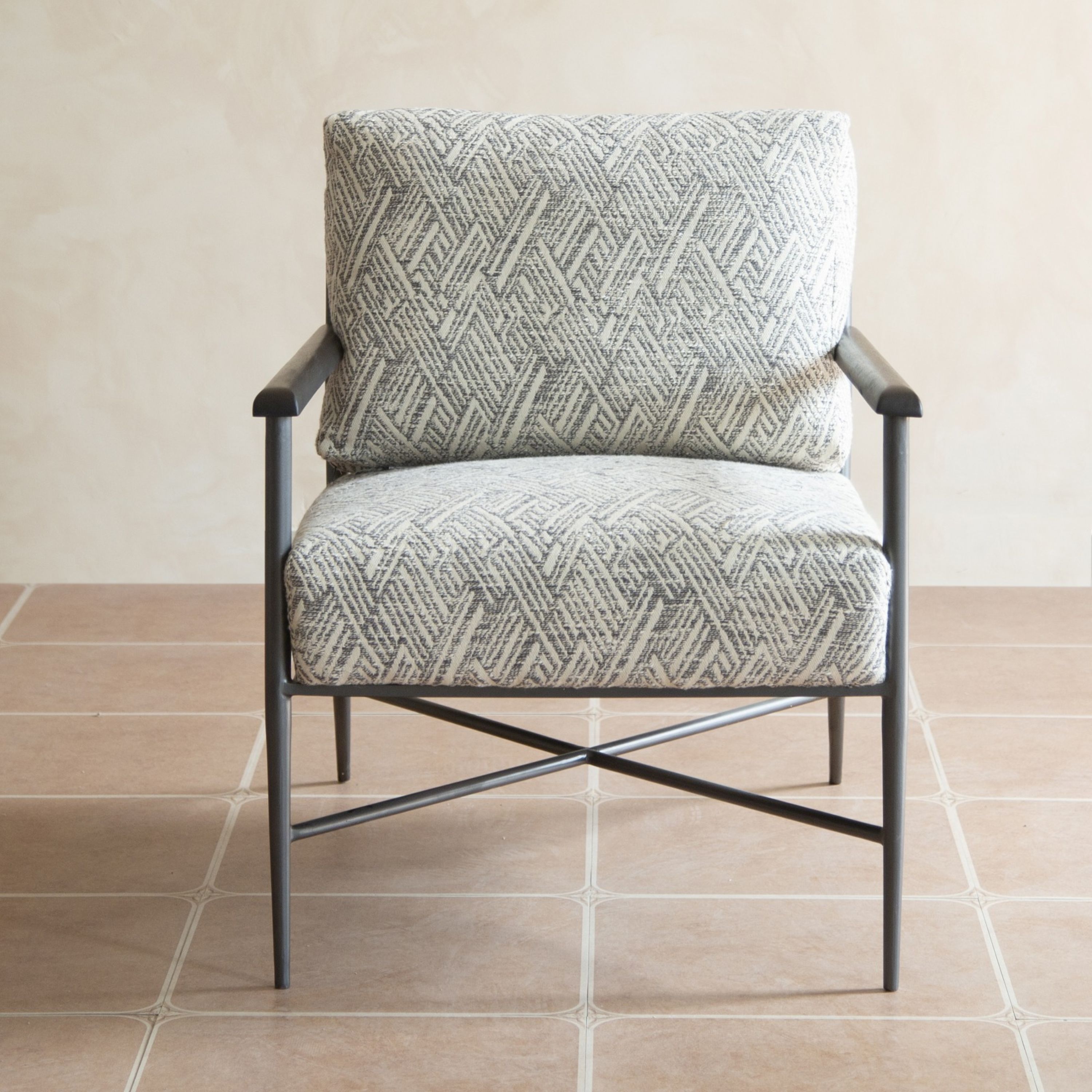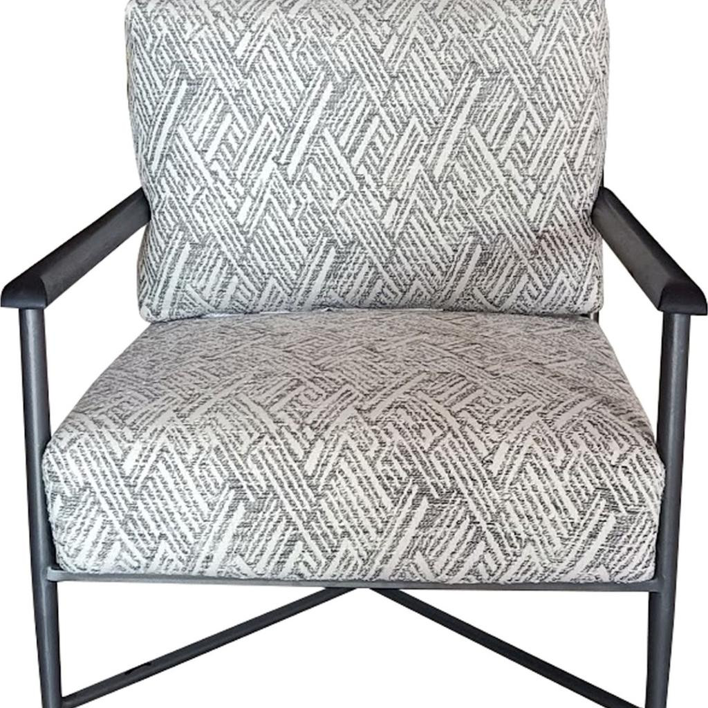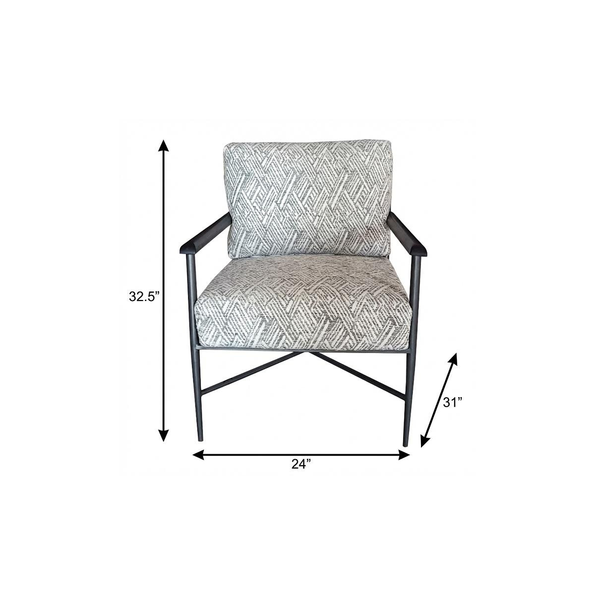A mix of form and function, this 24-inch light gray and white iron geometric arm chair will bring a good looking and usable accent to your space. This sturdy cotton arm chair comes upholstered in a fashionable light gray and white geometric design to give your space the perfect touch of modern and updated design. The sturdy inner frame is built with high quality iron, includes armrests, and features a loose back that is accented with soft and comfortable cushioning. A versatile slipcover is included as part of the design, allowing you to change up the look of your room with a change of the cover. 32.50-inch h x 24.00-inch w x 31.00-inch d.