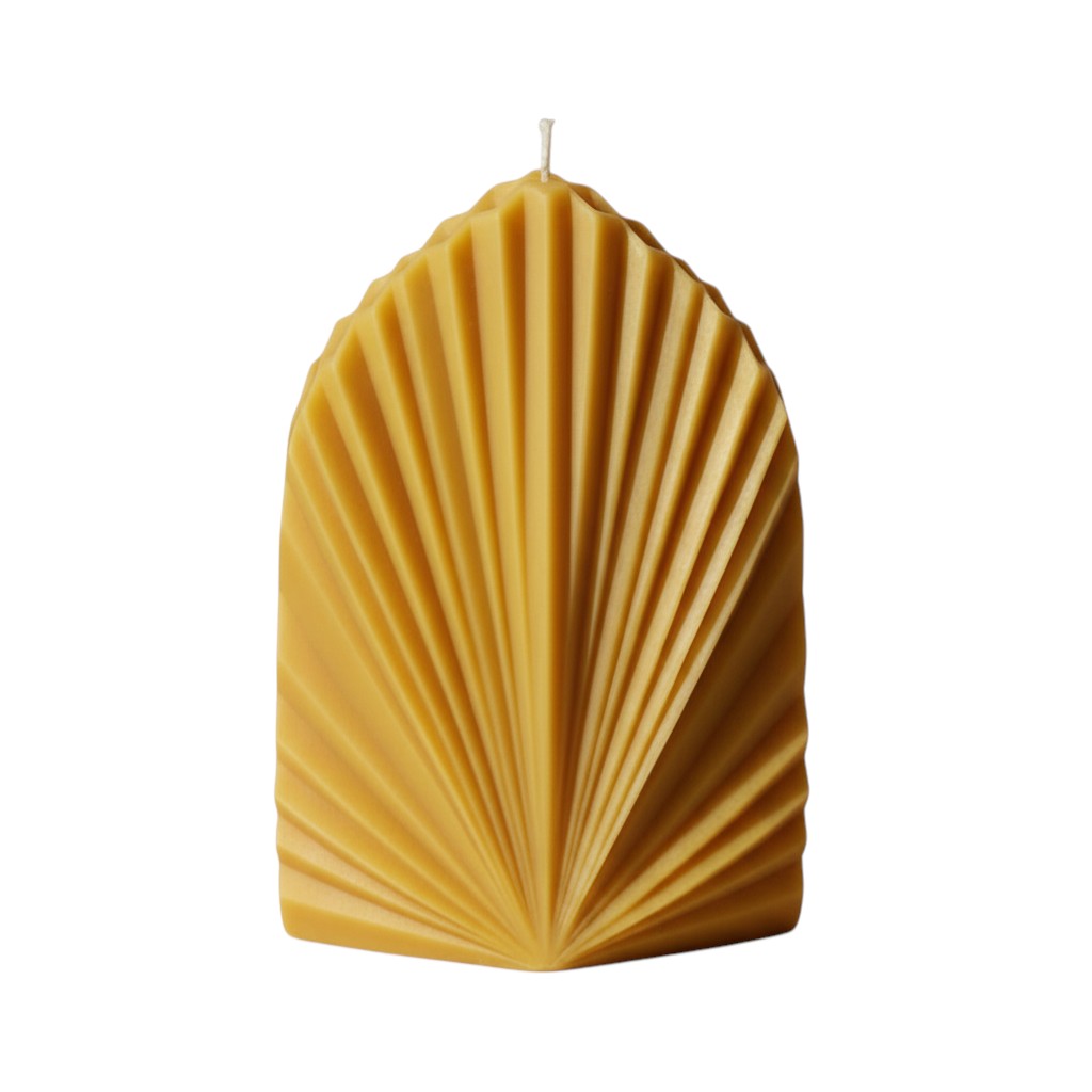Whether it's a romantic dinner, a relaxing bath, or a special celebration, this 6-inch gold lavender and sage scented dimensional palm leaf candle is the perfect complement to any occasion. This candle is unique and novel enough to make a statement in any decor. Designed with an aromatic lavender and sage fragrance for you to enjoy. Let the warm glow of candlelight create an intimate and welcoming ambiance for your guests or a soothing atmosphere for yourself. 6.00-inch h x 4.50-inch w x 3.00-inch d.