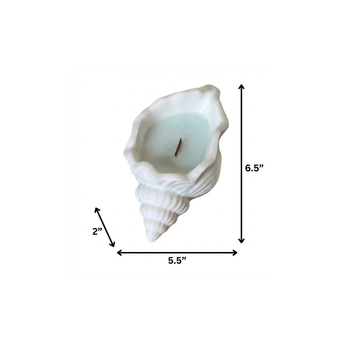Whether it's a romantic dinner, a relaxing bath, or a special celebration, this 6-inch light blue sea salt and orchid scented soy wax candle in white resin novelty holder is the perfect way to add a beach vibe to any space. The gentle flickering flame and the fragrance of our sea salt and orchid scented candle can help reduce stress, promote relaxation, and enhance overall well-being. Our carefully curated resin seashell candle holder is included, and it is not just decorative but also provides a secure and stable base for your candle. Let the warm glow of candlelight create an intimate and welcoming ambiance for your guests or a soothing atmosphere for yourself. 6.50-inch h x 5.50-inch w x 2.00-inch d.