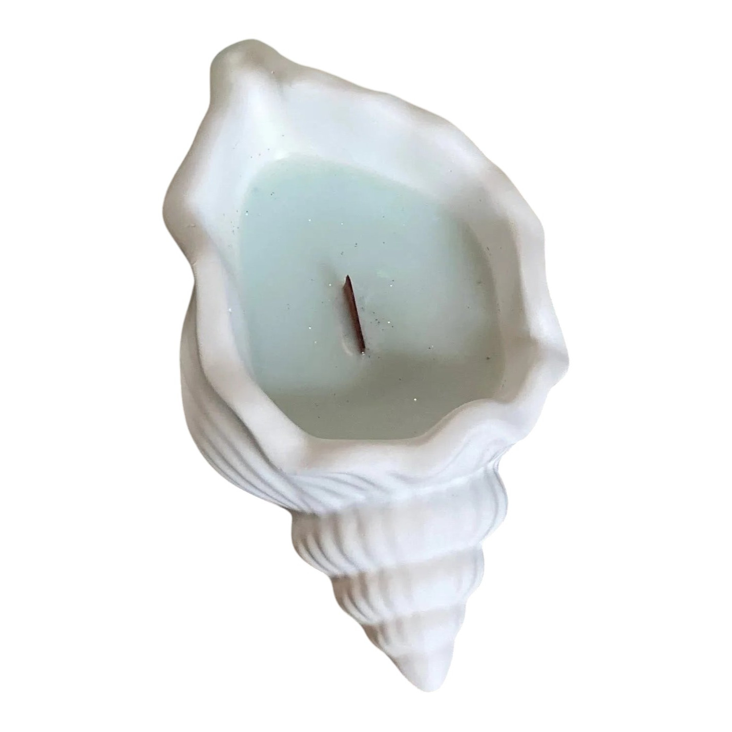 Whether it's a romantic dinner, a relaxing bath, or a special celebration, this 6-inch light blue high tide scented soy wax candle in white resin novelty holder is the perfect way to add a beach vibe to any space. The gentle flickering flame and the calming fragrance of our high tide scented candle can help reduce stress, promote relaxation, and enhance overall well-being. Our carefully curated resin seashell candle holder is included, and it is not just decorative but also provides a secure and stable base for your candle. Let the warm glow of candlelight create an intimate and welcoming ambiance for your guests or a soothing atmosphere for yourself. 6.50-inch h x 5.50-inch w x 2.00-inch d.