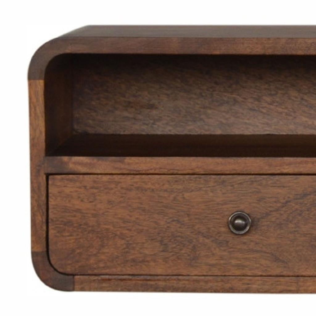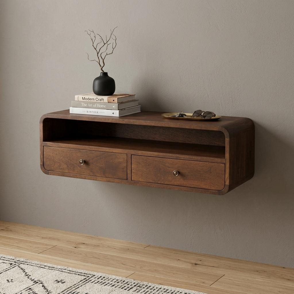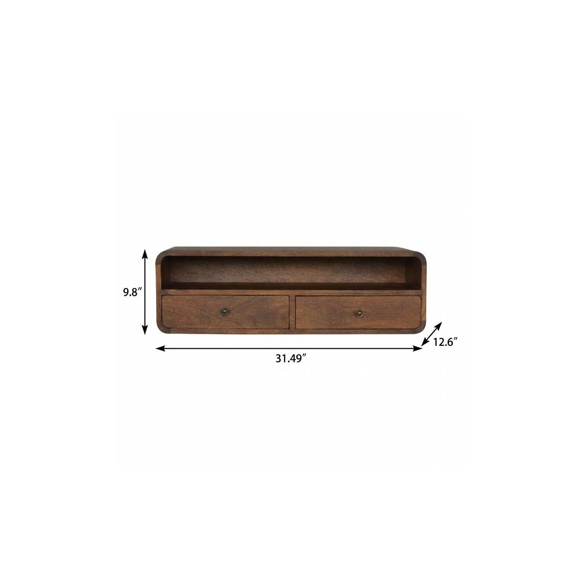 This 31-inch brown solid wood solid floating console table with shelf and with drawer can provide a variety of practical functions such as providing extra storage space, serving as a display area for decorative items or acting as a catch-all for keys, mail, and other small items. This versatile table is a classic rectangular shape, which will easily fit into most any space in your home. This unit has a brown genuuine hardwood tabletop. The solid base is made of solid wood, the most strong and durable option available. Versatile in use, console tables can be used for a variety of purposes in a variety of rooms and settings. 9.80-inch h x 31.49-inch w x 12.60-inch d.