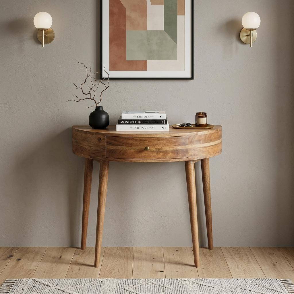 Transform your home with our elegant and versatile 28-inch brown solid wood solid console table with shelf and with drawer. Don't miss out on the perfect finishing touch for your home. This rectangular table has clean lines and plenty of surface area. If you are searching for the highest quality brown wood furniture, hardwood can not be beaten as an unmatchable combination of beauty, craftsmanship, and durability. The solid of this unit is crafted with solid wood, leaving you with a console table that is of the finest quality and materials. Ideal for living rooms, bedrooms, home offices, and lounge areas, this console table is not only good looking but multi-functional and practical addition to your space. 31.50-inch h x 27.60-inch w x 15.70-inch d.