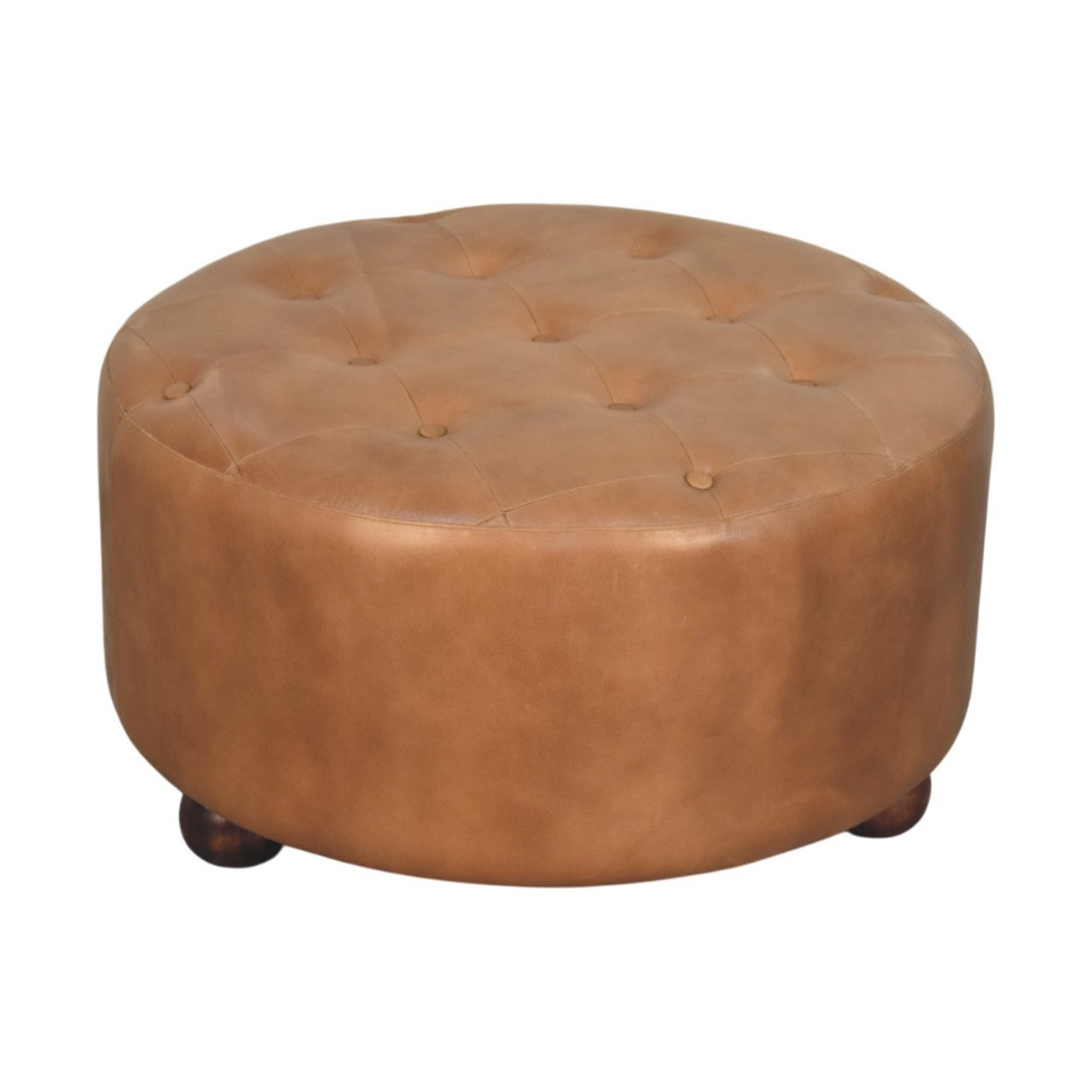 32" brown leather round footstool, brown leather round footstool, leather round footstool, 32" brown leather round, 32" brown leather |