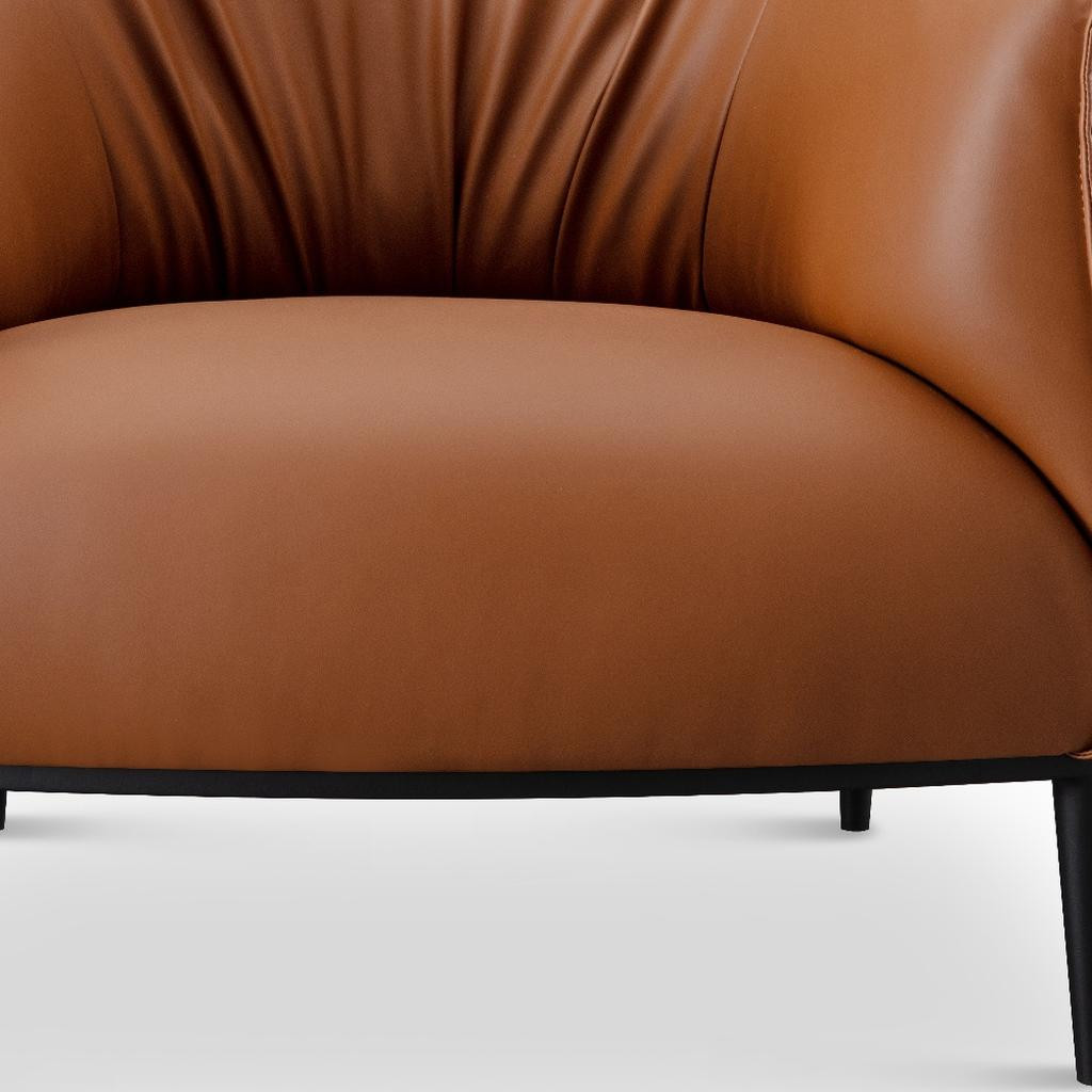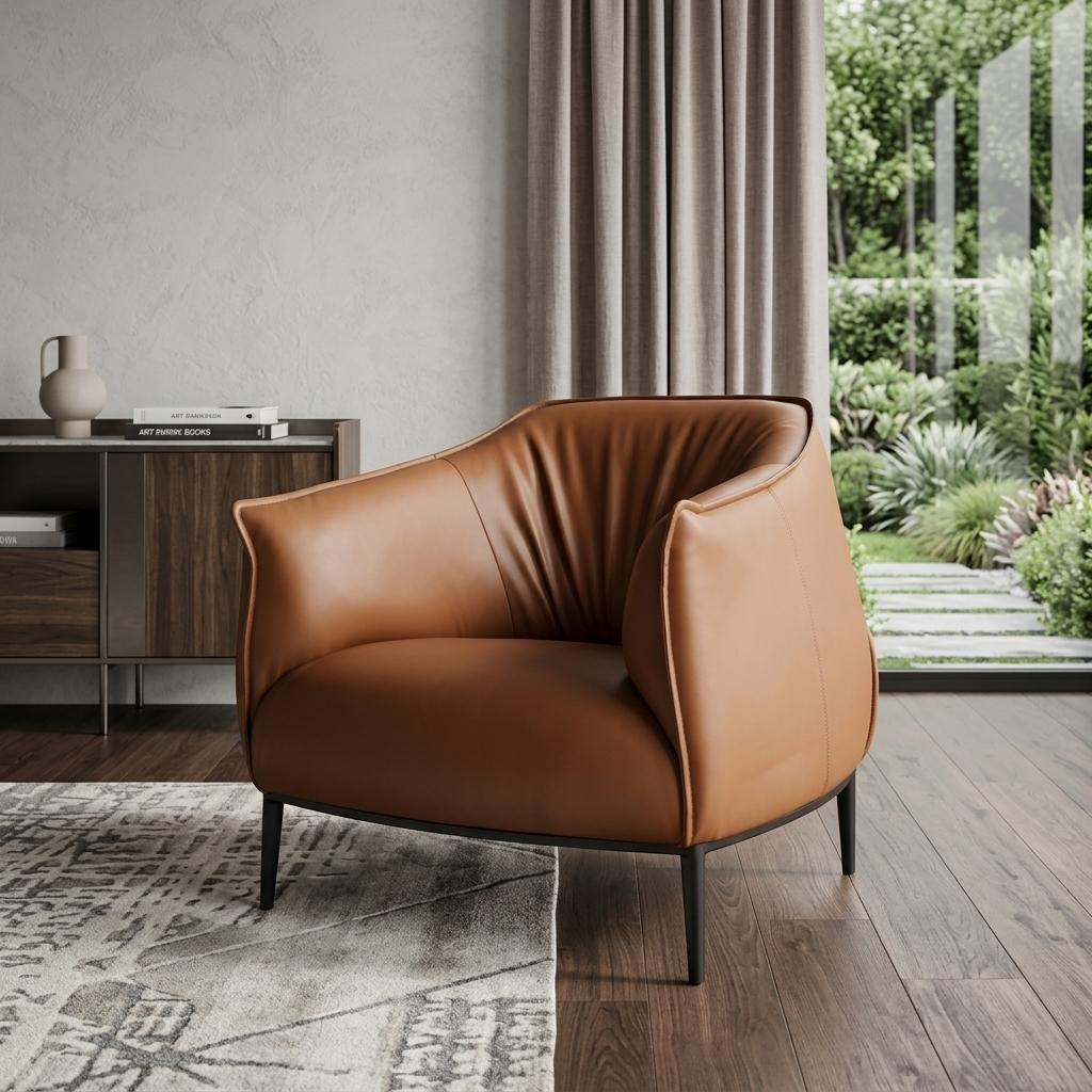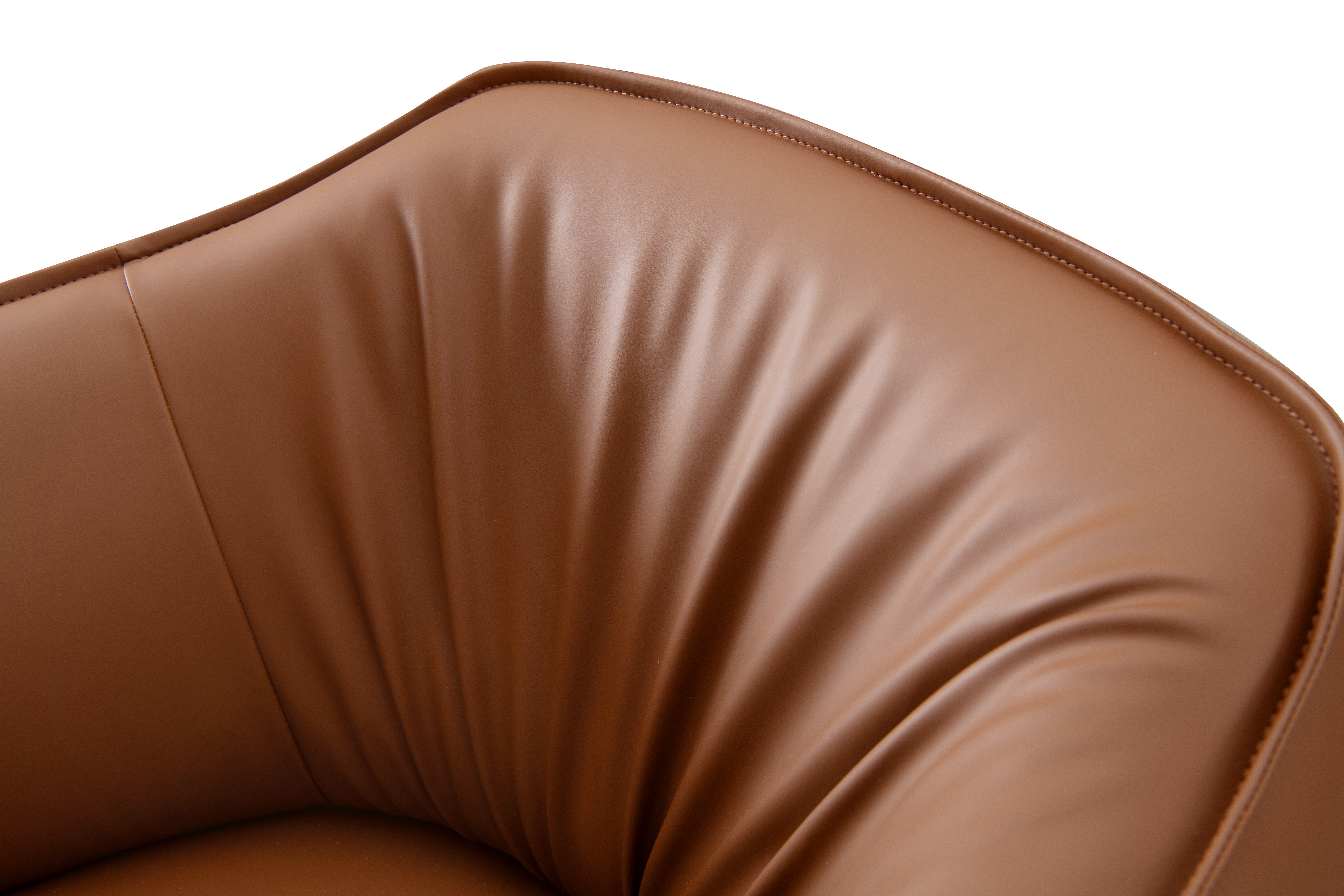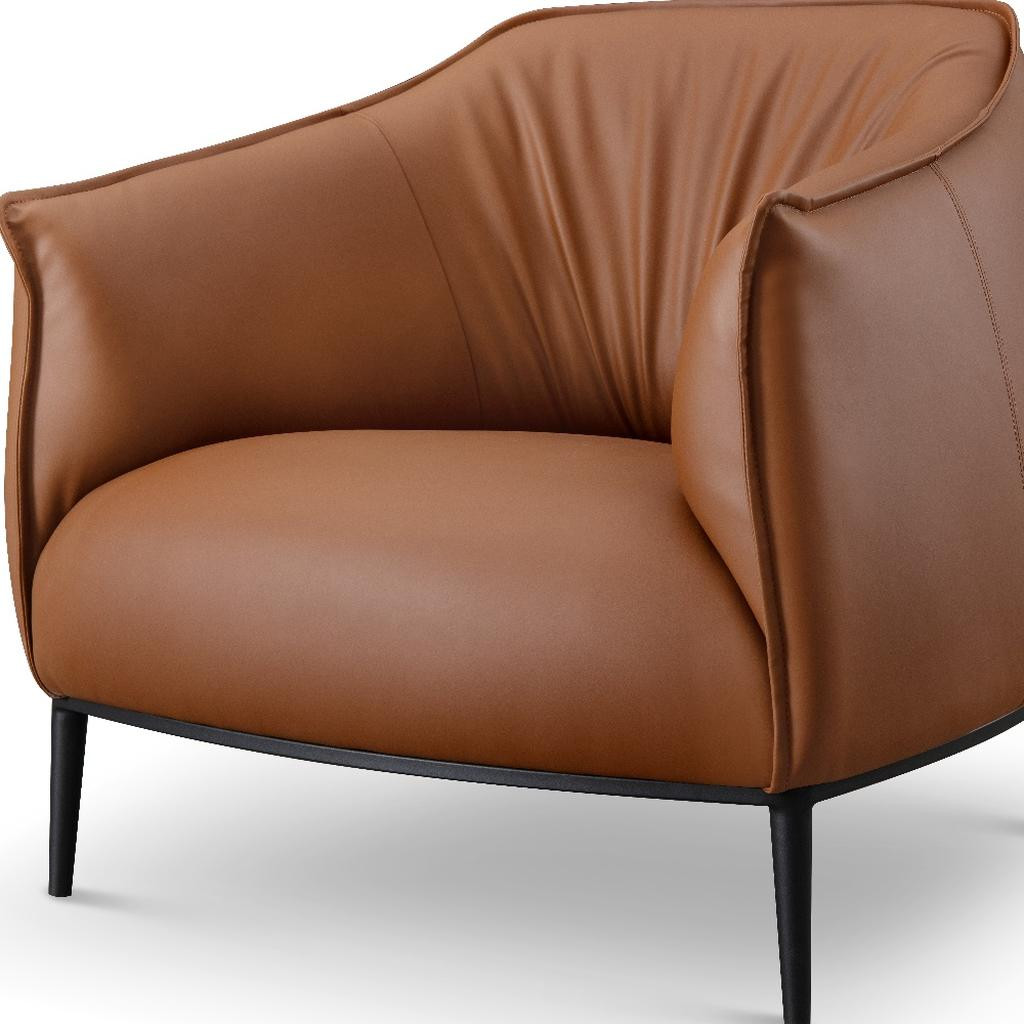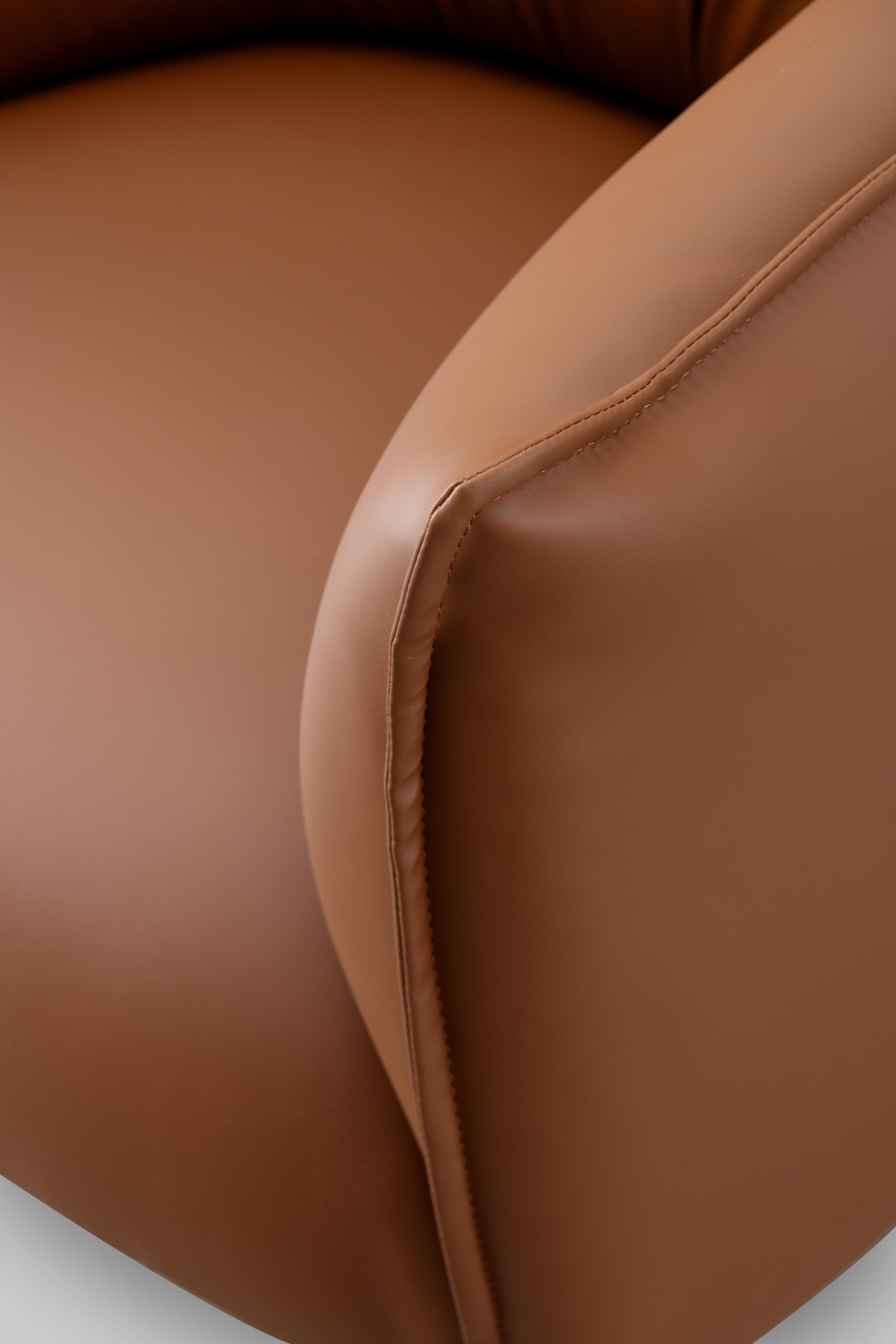 This 32-inch brown faux leather and wood arm chair will add a beautiful decorative accent to your decor. This sturdy faux leather upholstered arm chair comes in a chic solid brown color to give your space just the right look. The sturdy inner frame is built with high quality manufactured wood, includes armrests, and features a tight back that is accented with soft and comfortable cushioning. 30.00-inch h x 32.00-inch w x 33.00-inch d.
