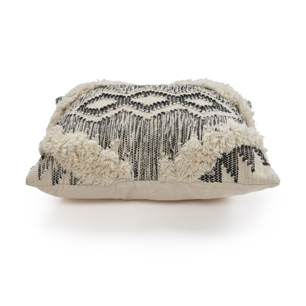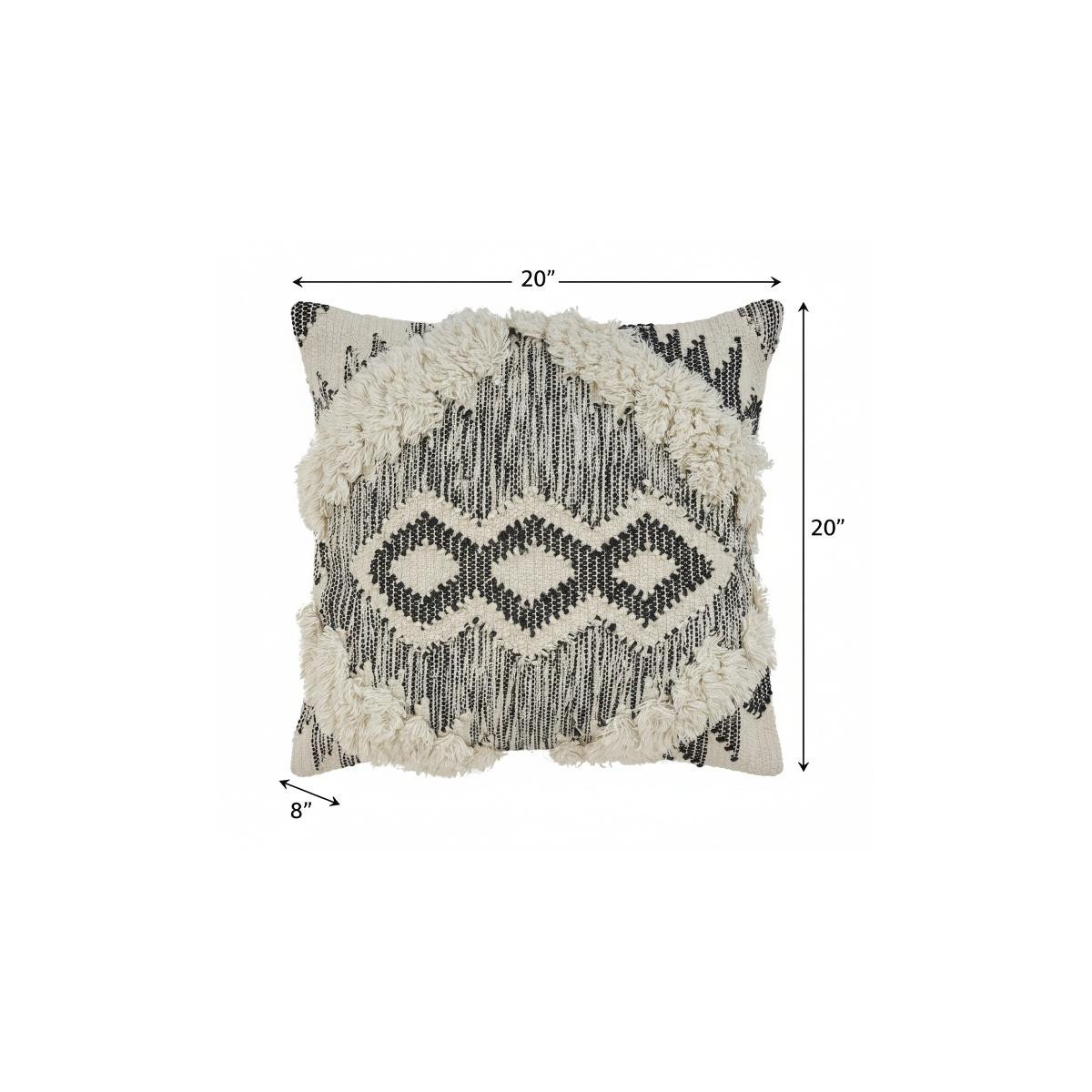 The perfect complement to your sofa, favorite chair, or bed, this 20-inch black and ivory geometric wool blend throw pillow is a great decorative accent. This black and ivory hued piece represents quality construction, expertly made from durable wool blend that is not only long lasting but soft to the touch as well. For anyone that loves to decorate or accent their space with color and texture. Decorative throw pillows not only add color and dimension to your space but can be comfy and supportive when you are lounging and cuddling as well. 20.00-inch h x 20.00-inch w x 8.00-inch d.