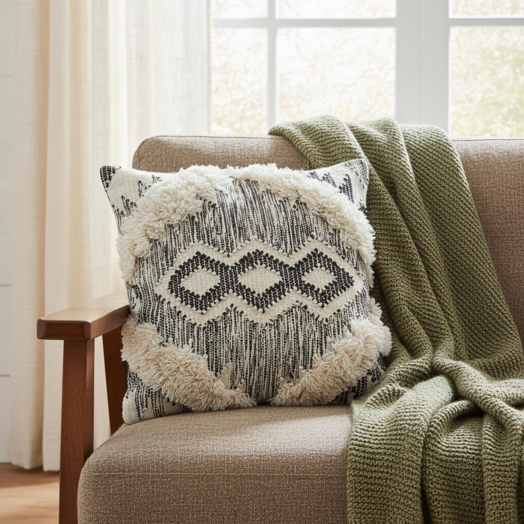 geometric wool blend throw pillow, wool blend throw pillow, blend throw pillow, ivory geometric wool blend throw, 20" black ivory geometric wool |