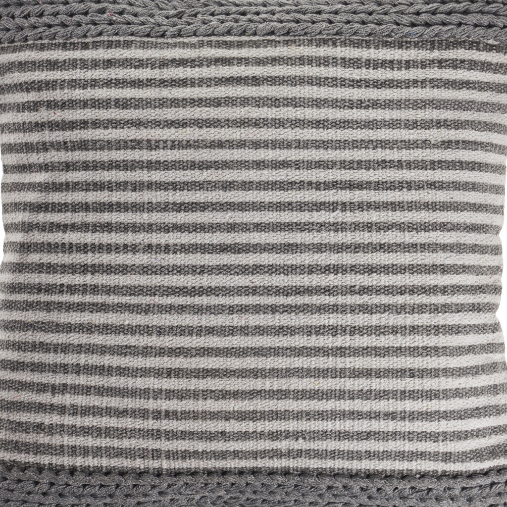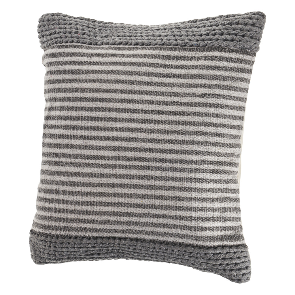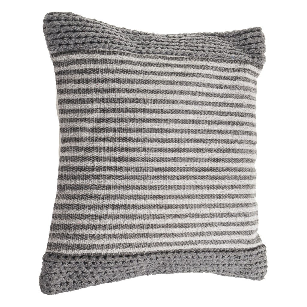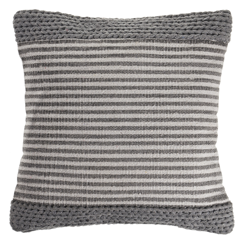 Unique and decorative, this comfortable 20-inch gray and ivory striped cotton blend throw pillow will leave a lasting impression. This soft and durable decorative pillow is expertly made of high grade, long lasting cotton blend in a gray and ivory coloration. For anyone that loves to decorate or accent their space with color and texture. Decorative throw pillows not only add color and dimension to your space but can be comfy and supportive when you are lounging and cuddling as well. 20.00-inch h x 20.00-inch w x 8.00-inch d.