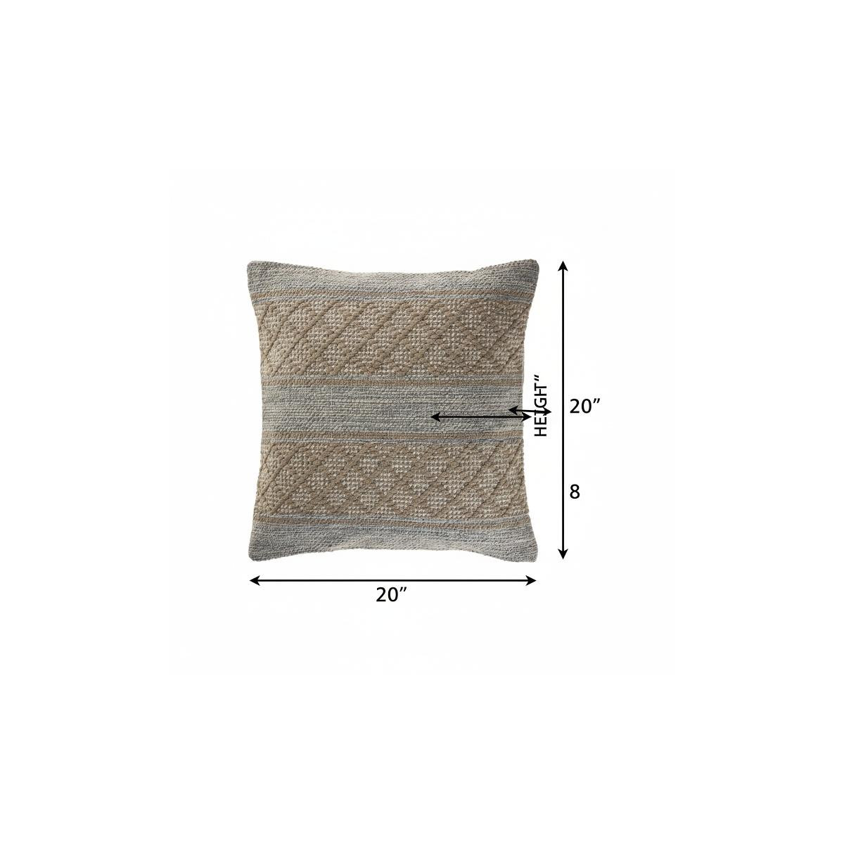 The perfect complement to your sofa, favorite chair, or bed, this 20-inch tan and gray geometric cotton blend throw pillow is a great decorative accent. This tan and gray hued piece represents quality construction, expertly made from durable cotton blend that is not only long lasting but soft to the touch as well. For anyone that loves to decorate or accent their space with color and texture. A great decorative accessory to add color and dimension to your favorite chair, accent your sofa, or to use as part of your bed ensemble. 20.00-inch h x 20.00-inch w x 8.00-inch d.