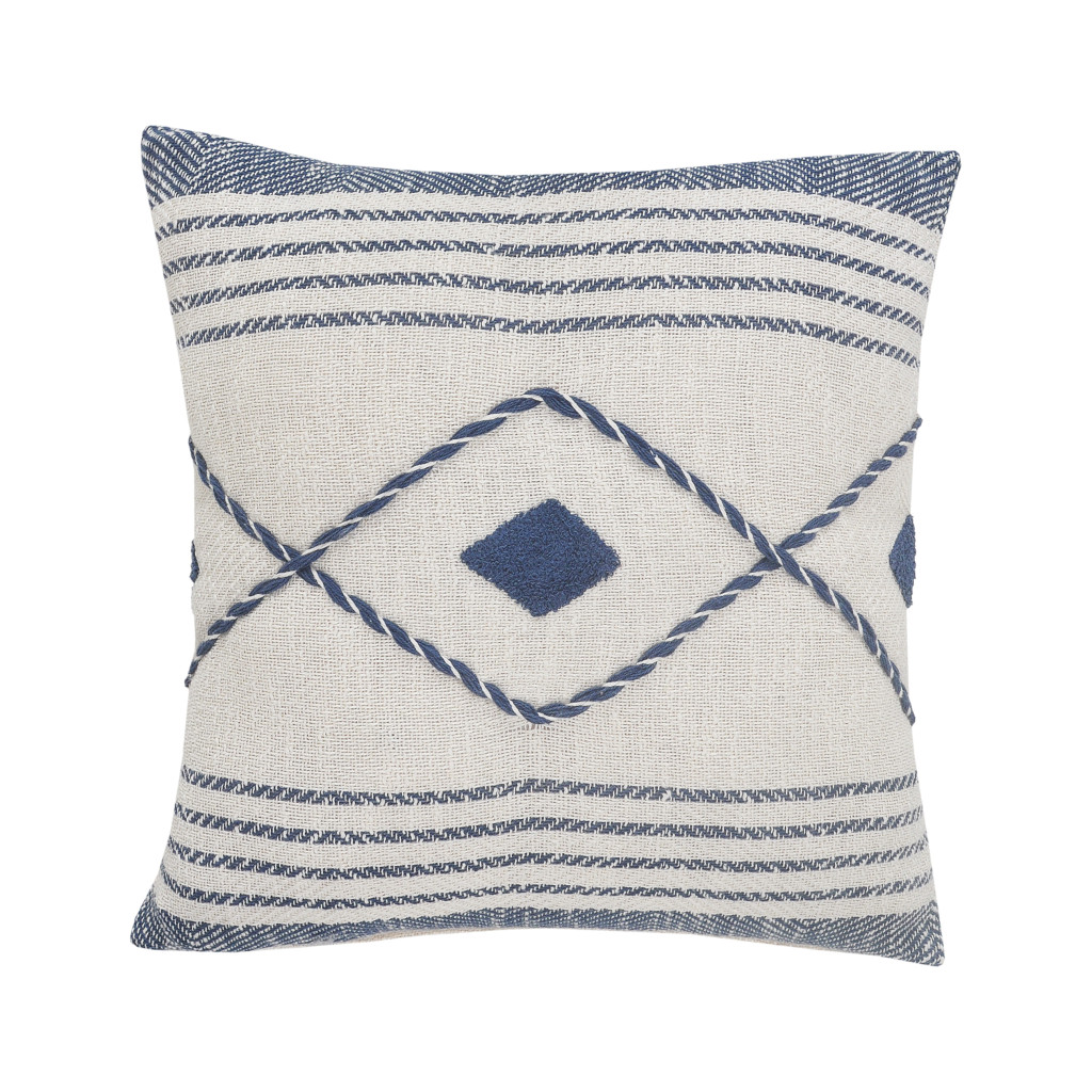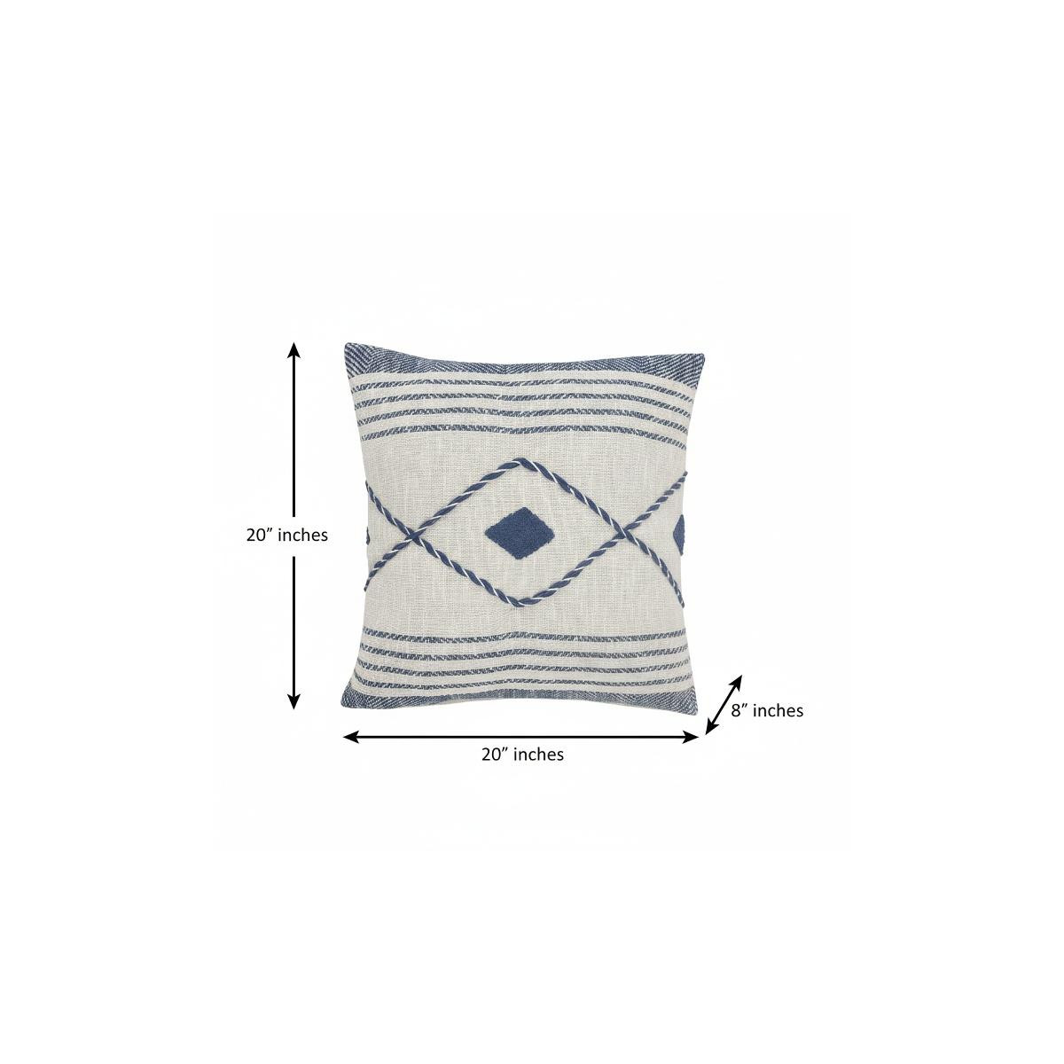 The perfect complement to your sofa, favorite chair, or bed, this 20-inch blue and white beach geometric cotton throw pillow is a great decorative accent. This blue and white colored decorative pillow is made from high grade cotton that is durable and long lasting. Decorative pillows are a great way to change up the look and feel of your space easily and quickly. Decorative throw pillows not only add color and dimension to your space but can be comfy and supportive when you are lounging and cuddling as well. 20.00-inch h x 20.00-inch w x 8.00-inch d.