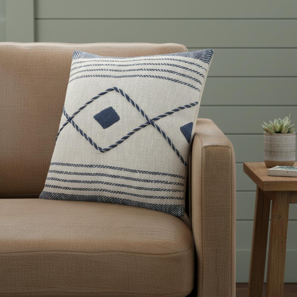 beach geometric cotton throw pillow, geometric cotton throw pillow, cotton throw pillow, blue white beach geometric cotton, white beach geometric cotton throw |