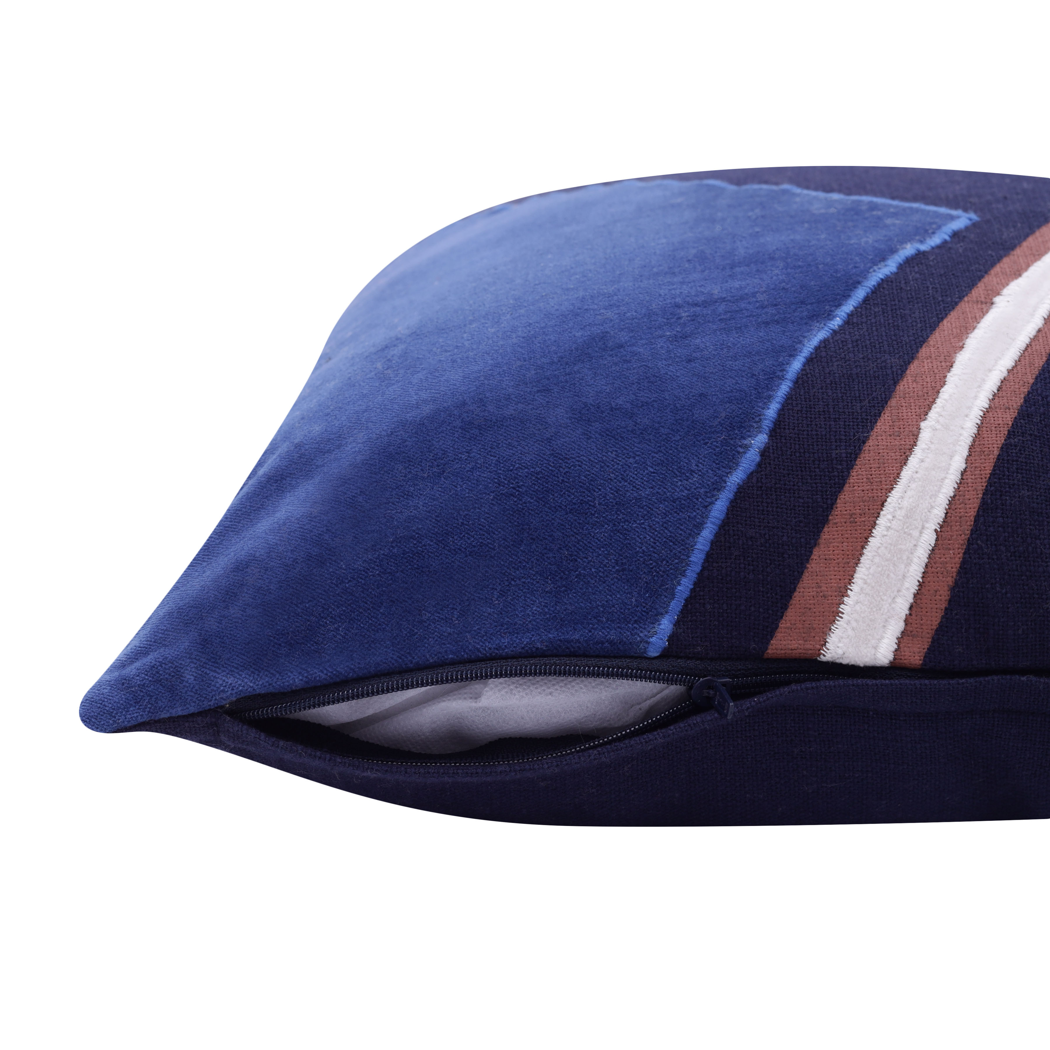 The perfect complement to your sofa, favorite chair, or bed, this 20-inch blue and navy blue abstract cotton throw pillow is a great decorative accent. The blue and navy blue coloring of the extremely durable and long lasting cotton will add dimension and texture to your space. Great to use on its own or mix with other decorations for the perfect look. Decorative throw pillows not only add color and dimension to your space but can be comfy and supportive when you are lounging and cuddling as well. 20.00-inch h x 20.00-inch w x 8.00-inch d.