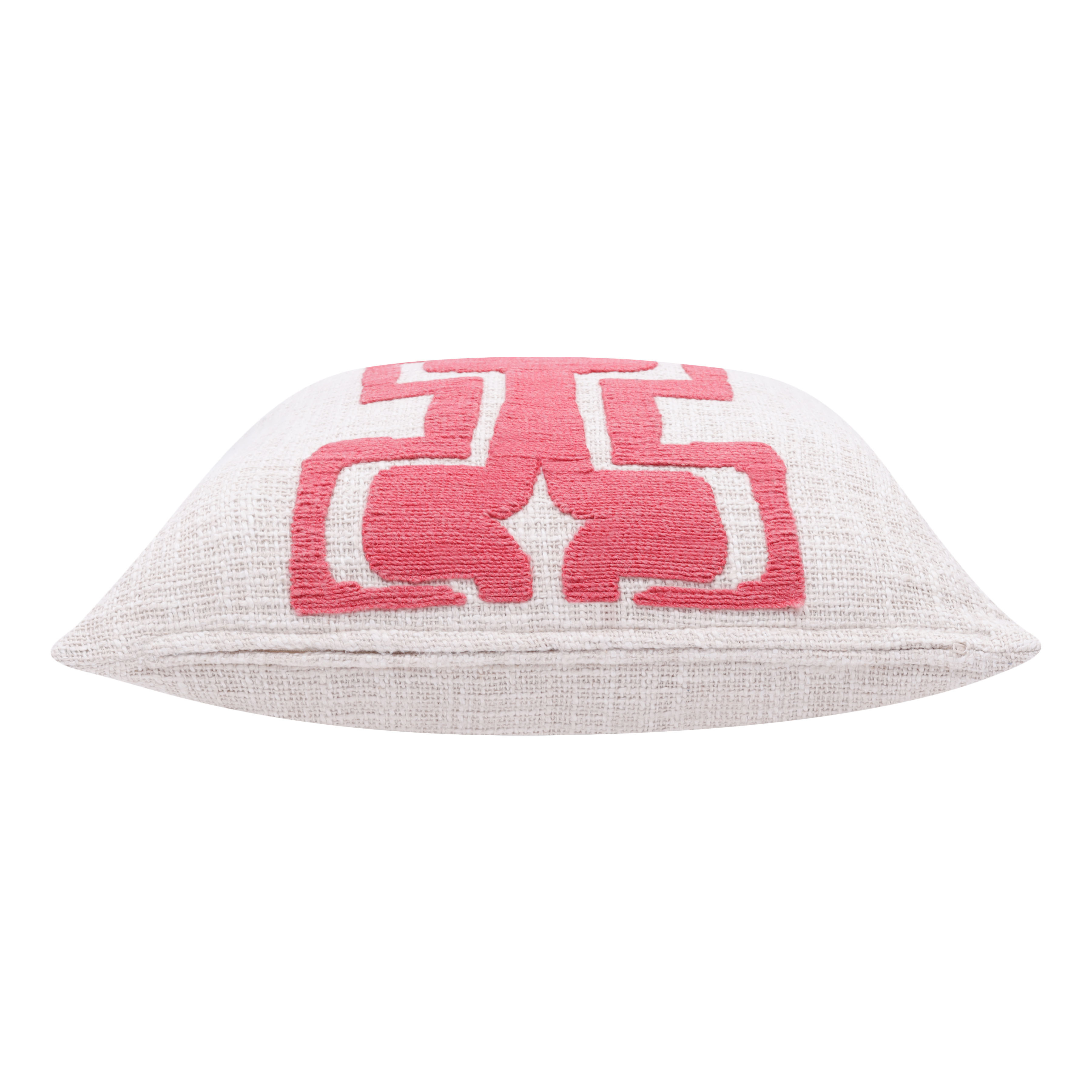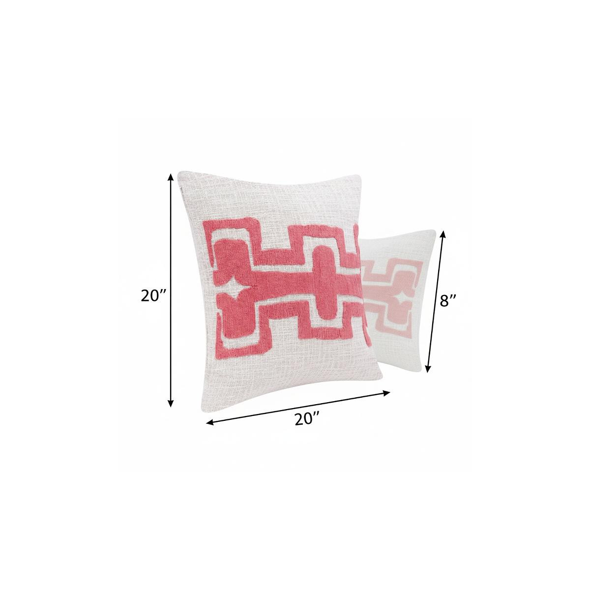 The perfect complement to your sofa, favorite chair, or bed, this 20-inch pink and ivory geometric cotton blend throw pillow is a great decorative accent. The pink and ivory coloring of the extremely durable and long lasting cotton blend will add dimension and texture to your space. Great to use on its own or mix with other decorations for the perfect look. A great decorative accessory to add color and dimension to your favorite chair, accent your sofa, or to use as part of your bed ensemble. 20.00-inch h x 20.00-inch w x 8.00-inch d.