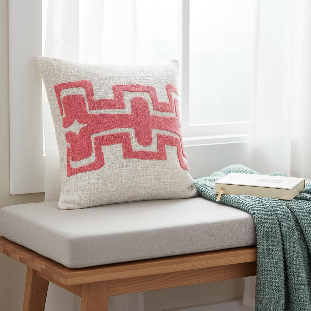 geometric cotton blend throw pillow, cotton blend throw pillow, blend throw pillow, 20" pink ivory geometric cotton, ivory geometric cotton blend throw |