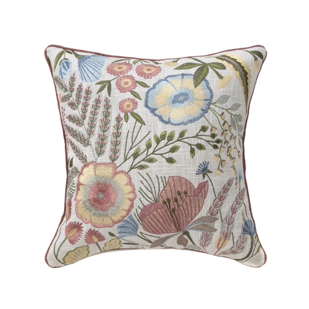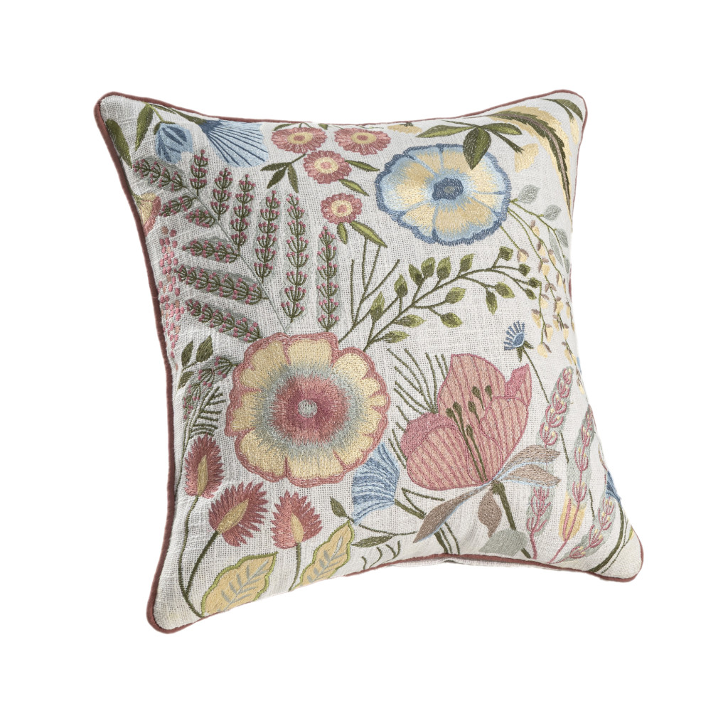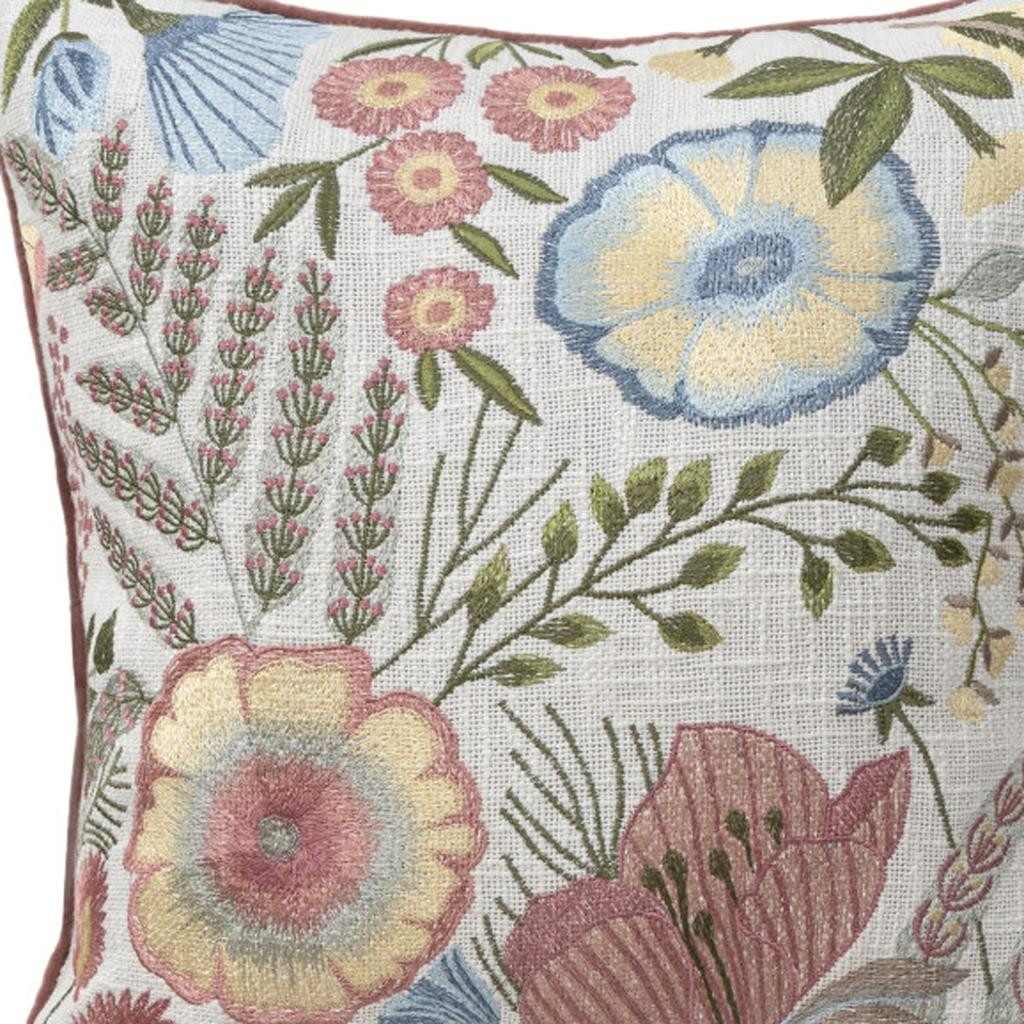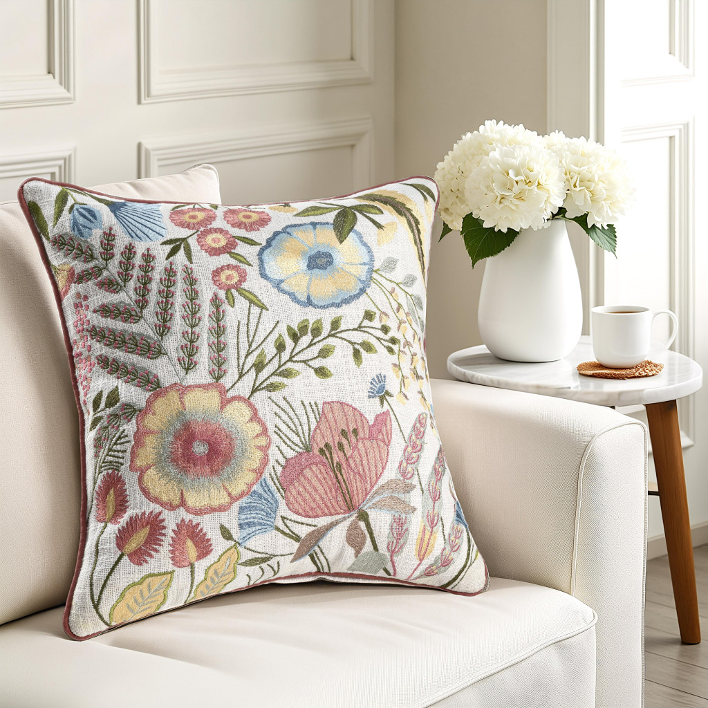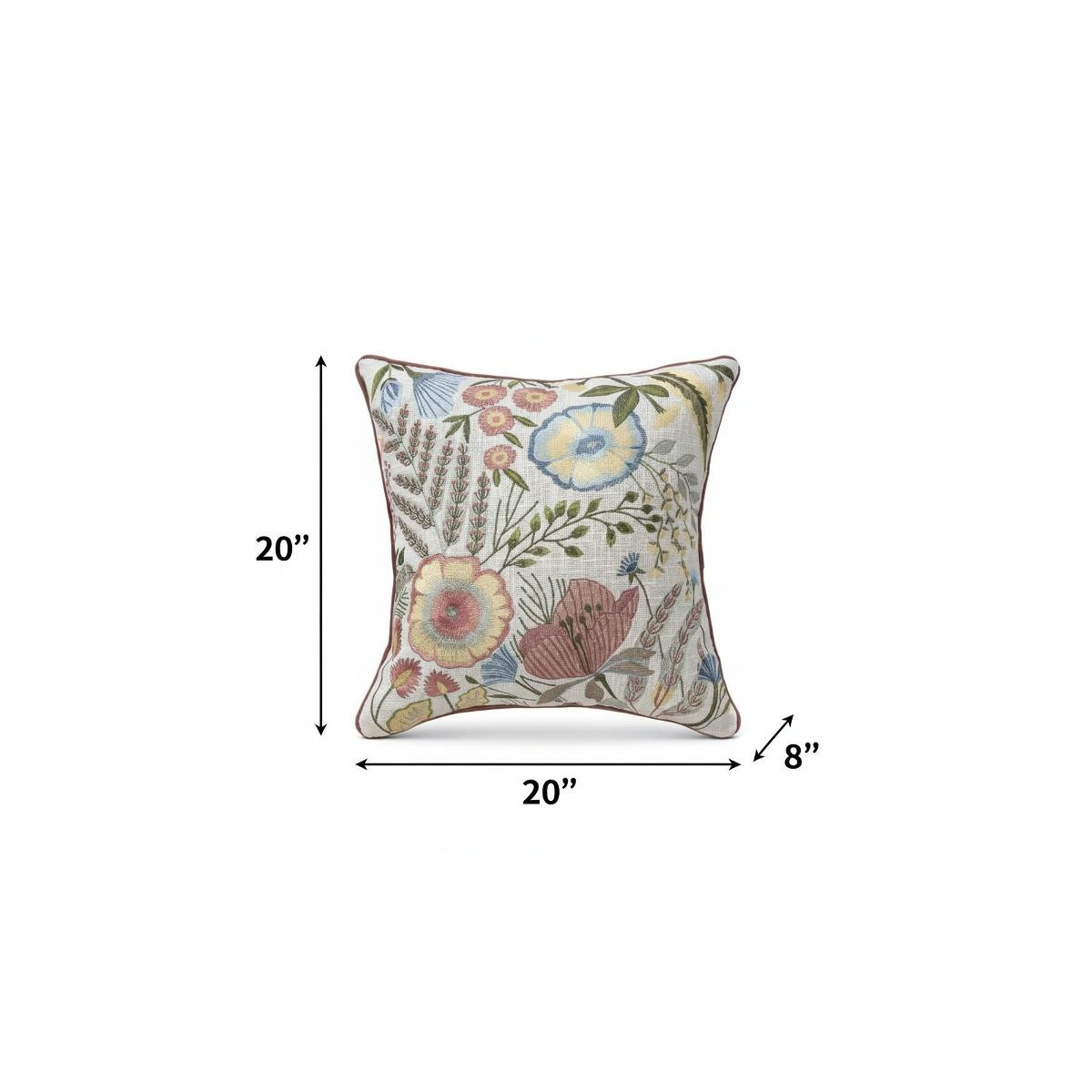red floral cotton throw pillow, floral cotton throw pillow, cotton throw pillow, 20" white red floral cotton, white red floral cotton throw |